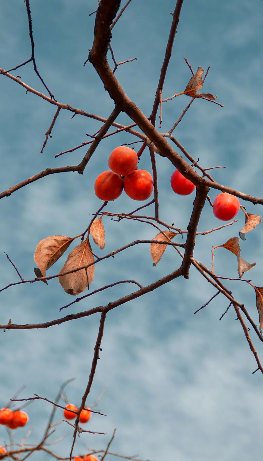 地上的枯叶被风吹得打旋旋,在地坎边堆成团。柿子树叶最早落尽,枝梢头高悬的几个残留的红柿子特别耀眼,像小灯笼,也没有鸟雀来光顾它们。因为许多鸟都飞走了,而灰椋鸟的南下大部队恐怕才从北方那边起身。