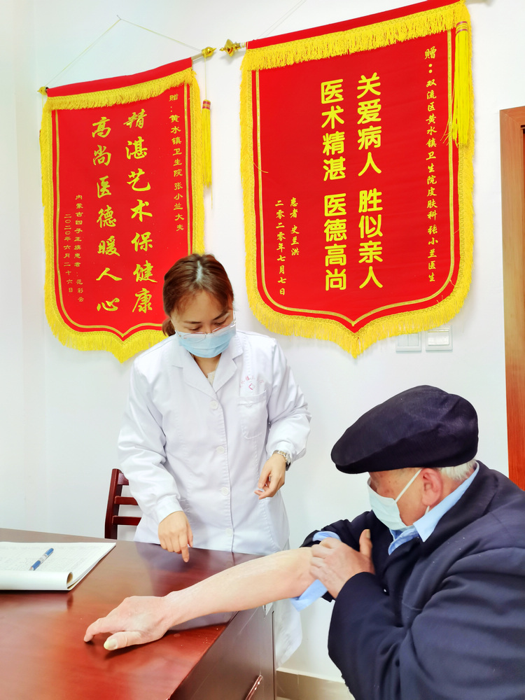 4月13日上午,65岁的王大爷在女儿的陪同下来到黄水镇卫生院治疗颈、腰部皮肤瘙痒问题,王红艳团队皮肤科医生张小兰接待了他。“检查完皮肤问题后,按照惯例,我又给他测量了一下血压。”张小兰说,这一测还真测出了问题!高压180mmHg、低压120mmHg,看起来健康、硬朗的王大爷竟然已经属于三级高血压了,情况非常危险。为了确定检测结果,张小兰通知王红艳带着另一台血压仪来为大爷进行复测,在发现结果没问题后,立即开具了转诊单,建议王大爷的女儿立即把他送去上级医院进行用药治疗,王大爷当天下午就顺利办理了入院手续,家庭医生继续跟踪王大爷的诊治情况。