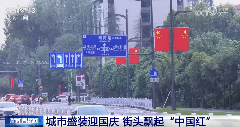 央视网消息:随着国庆中秋双节临近,全国各地装扮一新。在重庆、江西、浙江等地,大街小巷的五星红旗迎风飘扬,一派喜庆祥和。
