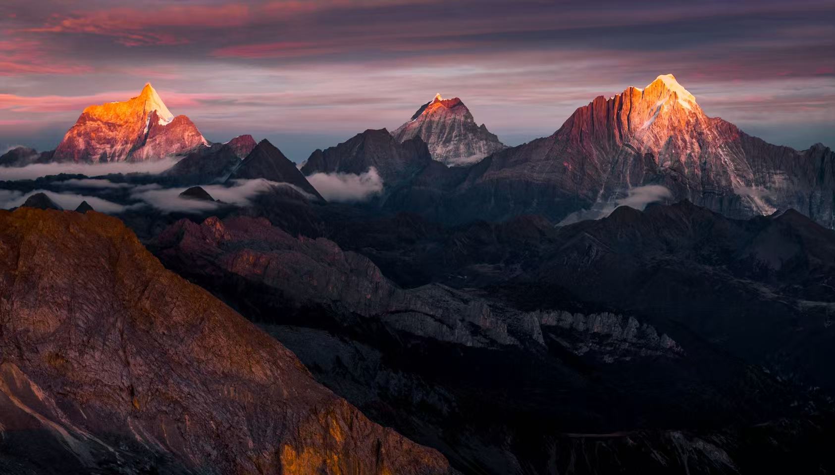 7508.9米的贡嘎山主峰——木雅贡嘎,被誉为“蜀山之王”,令不少攀登者和摄影师为之向往。阿卓志鸿向记者分享了他眼中拍摄贡嘎山的绝美角度。“贡嘎山从东西南北面拍摄的角度都有,但我认为站在那玛峰山顶上拍的角度是最棒的。”