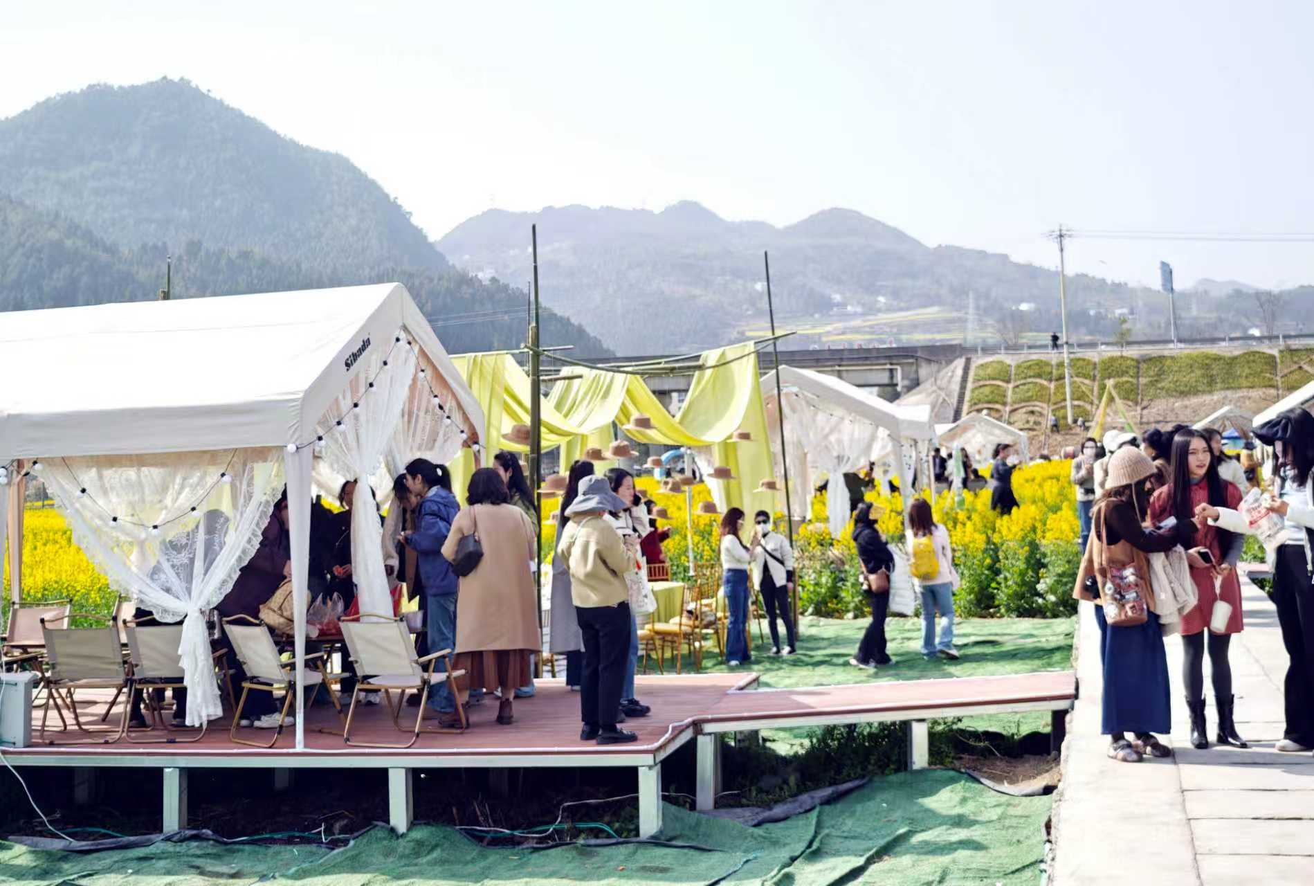 “我们依托油菜花海做优做活乡村旅游,就是要让游客有更多体验,同时带动村民就近就业,让土特产更好变现,让大家都能从‘花经济’中受益。”羊木镇东山村党支部书记李海霞表示,近年来,羊木镇立足本地油菜种植资源优势,深耕农旅融合发展路径,从村民需求出发不断丰富赏花业态,推动旅游体验从单纯赏花向“赏花+美食+文旅+消费”全方位升级。今年,该镇在保留花海火锅等成熟项目的基础上,新增乡村音乐会、特色集市等多元体验,进一步丰富游玩内容,让游客“玩得好、留得住”。