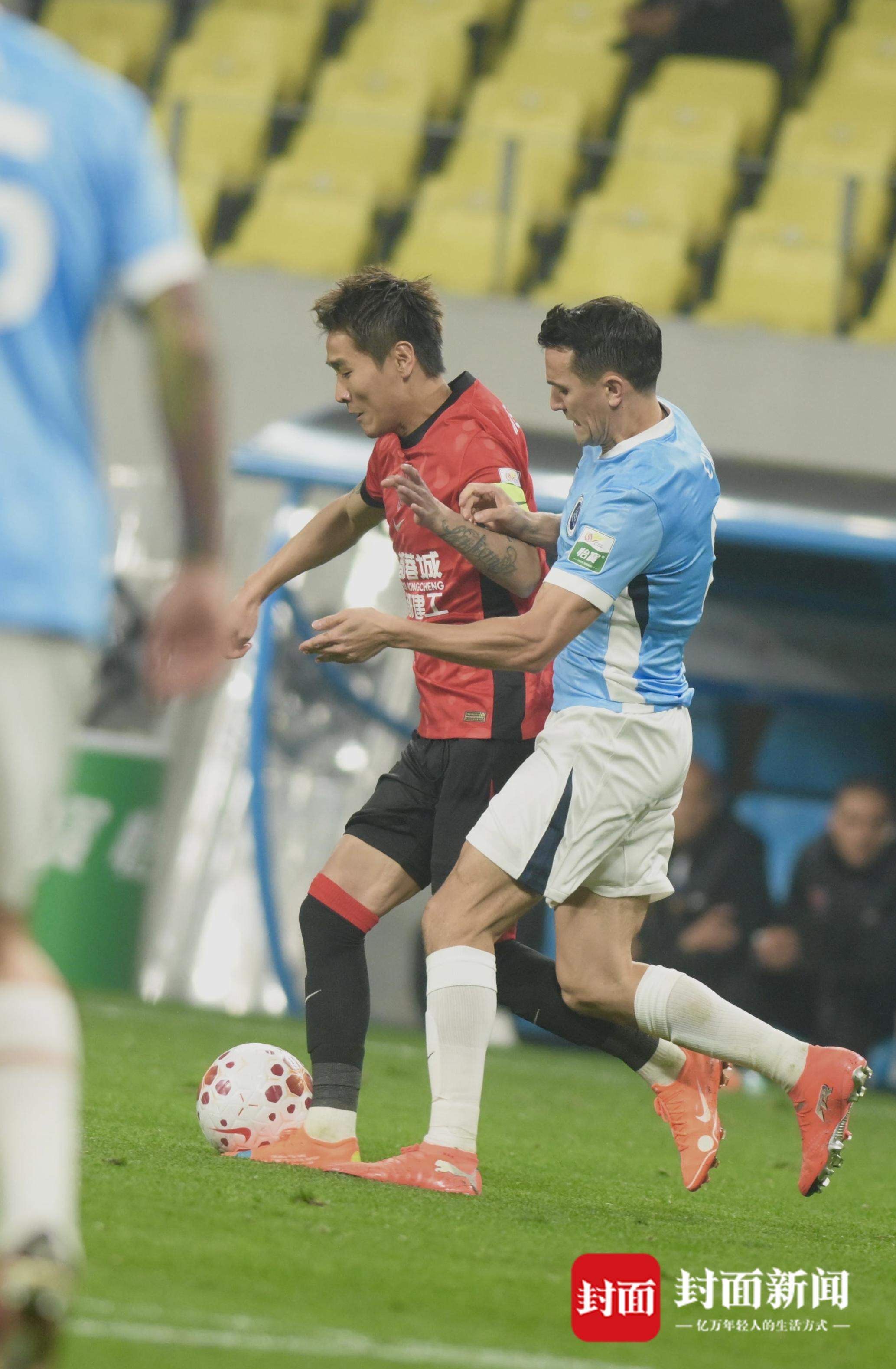 值得一提的是,本场比赛的另一大看点是“归家”。前成都队长周定洋此役身披深圳8号战袍首发登场,在比赛前,他和蓉城的老朋友们纷纷打起招呼。在比赛中,这位“跑动王”依然积极奔跑,但是在今天成都蓉城压倒性的进攻火力下,周定洋未能有出色发挥。