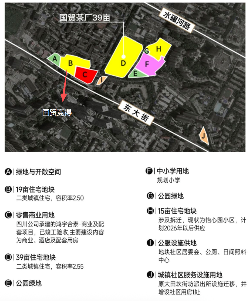 今年6月19日,国贸地产以楼面价35500元/㎡、总价23.26亿元斩获锦江区一心桥片区地块约39亩宅地,溢价率达75.74%,该地块就在今日成交宗地东侧附近。