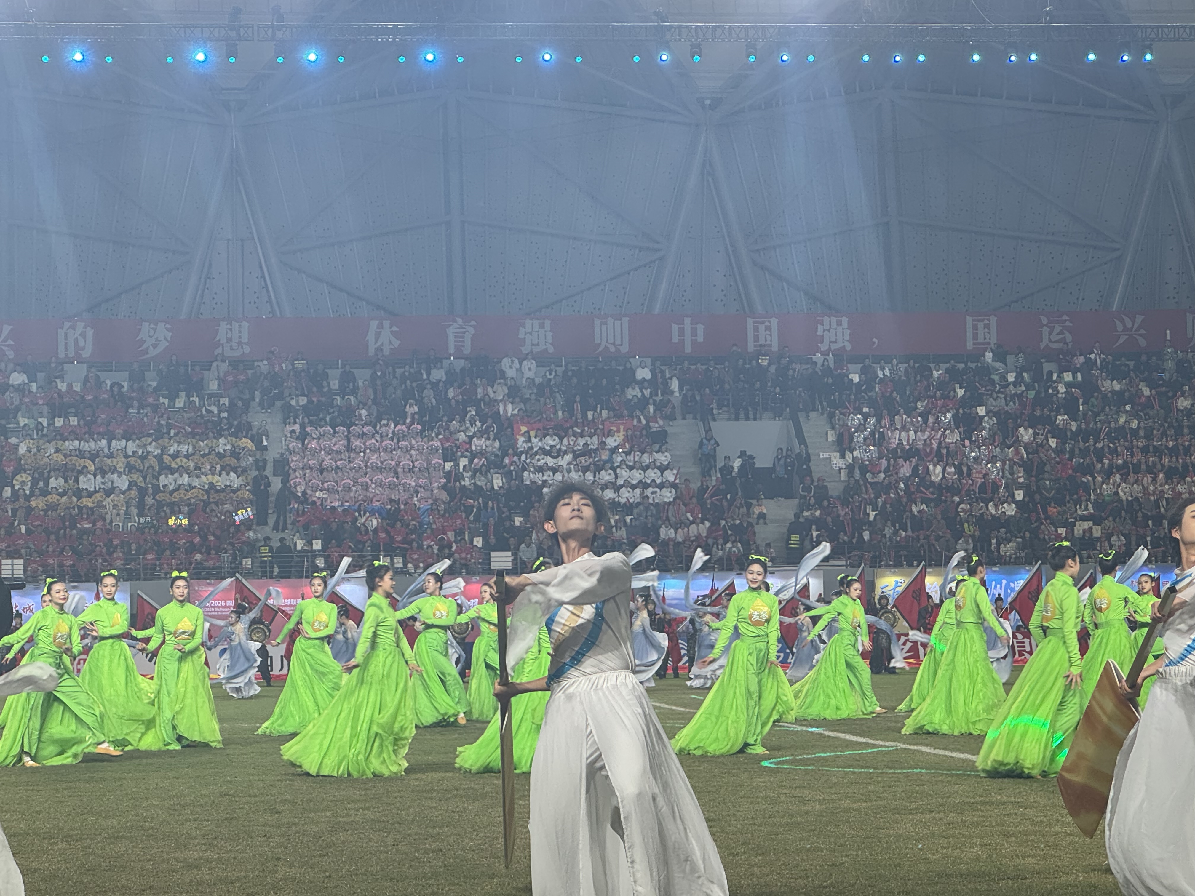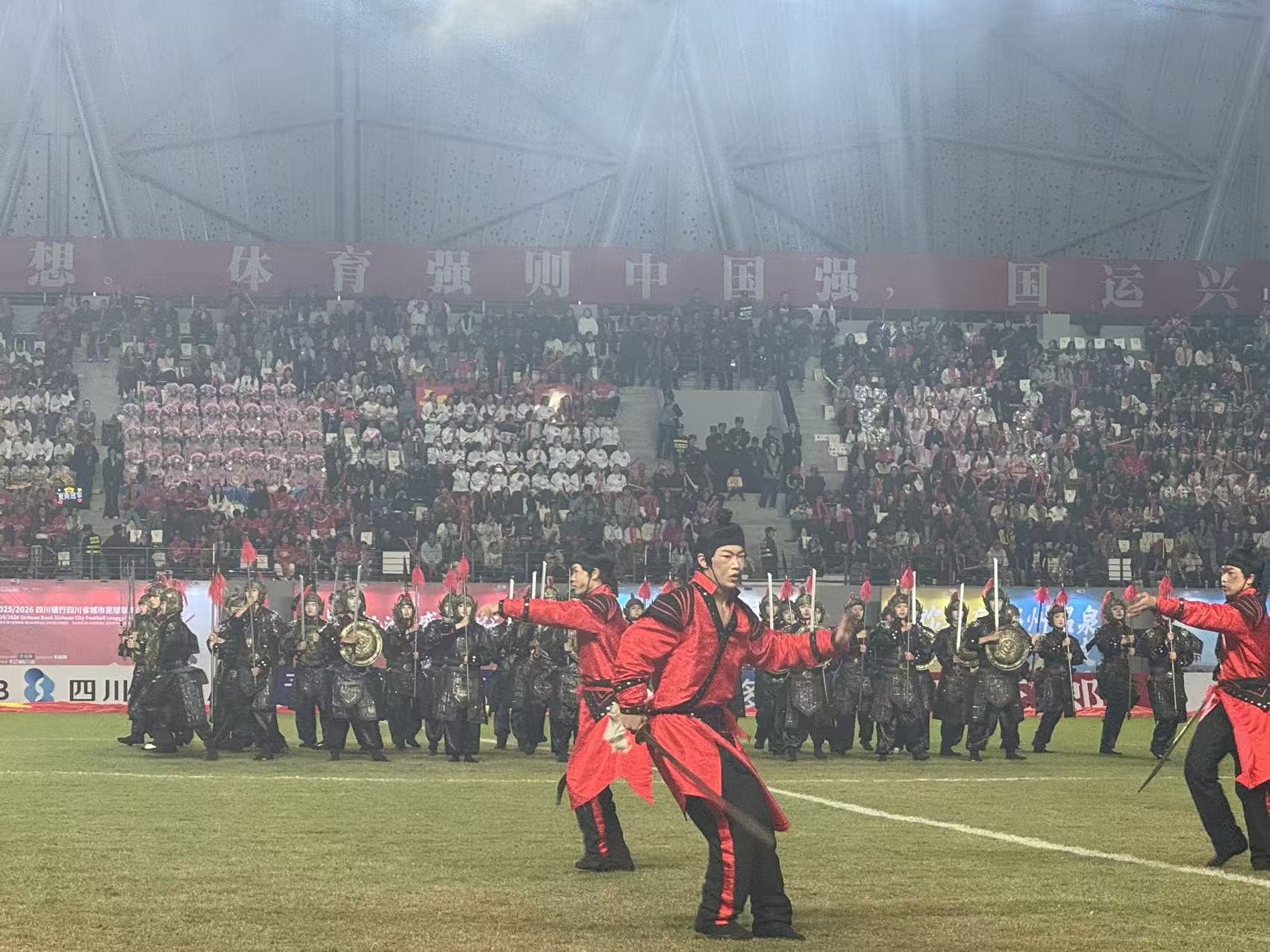 在开场表演中,《郪风唐韵》让人一眼穿越盛唐,感受金戈铁马的震撼,两只飞翔的“火凤凰”,引起了全场的欢呼。 今年恰逢三台中学成立120周年,三台中学的学子也带来了他们的节目,宏大的场面让人心潮澎湃。有网友说,这哪里是足球比赛,显然是一场演唱会的暖场节目。