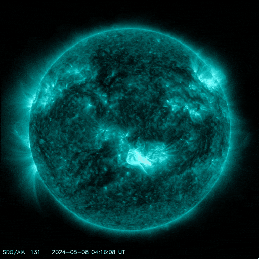 北京时间5月8日12:24的X1.0级耀斑(SDO卫星监测)