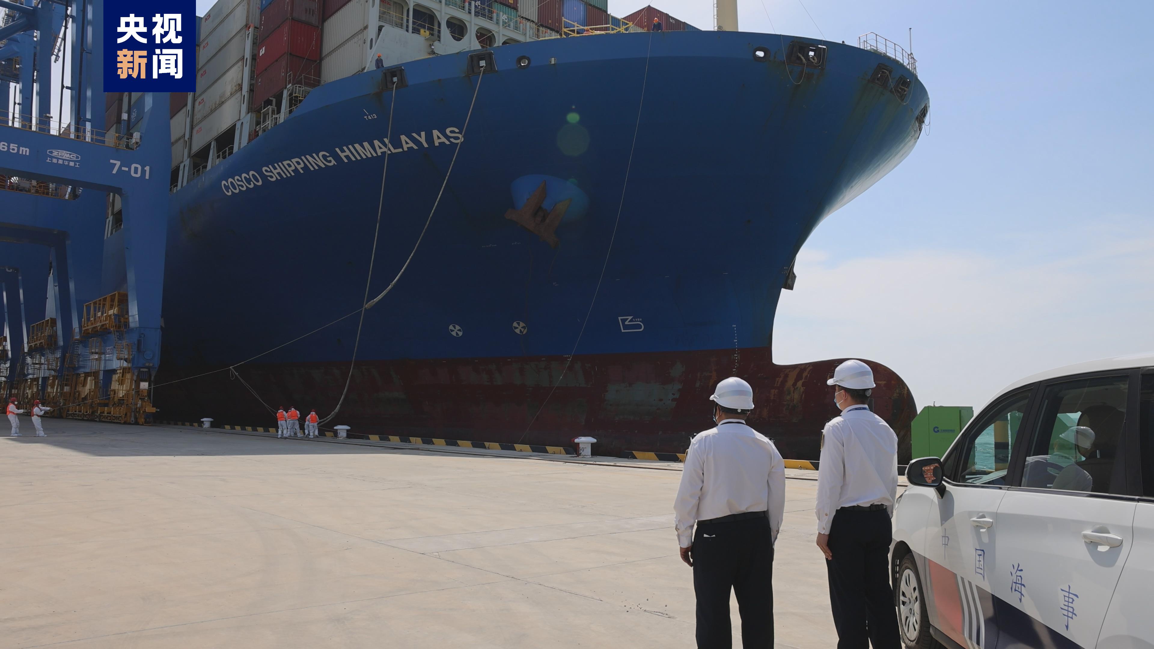 北部湾港钦州自动化集装箱码头于今年6月28日正式启用,它是全球首创U型工艺、全国首个海铁联运集装箱码头,为西部陆海新通道建设和RCEP成员国货物流通提供强力支撑。此次靠泊的中远海运喜马拉雅轮是该码头正式启用以来最大的集装箱船舶,它的载重吨154520吨,船长366米,船宽51.2米,最大装箱量14566TEU,于10月28日装从新加坡开往钦州港。靠泊钦州自动化集装箱码头后装载的10886个集装箱将通过全自动化的机械有序完成装卸。