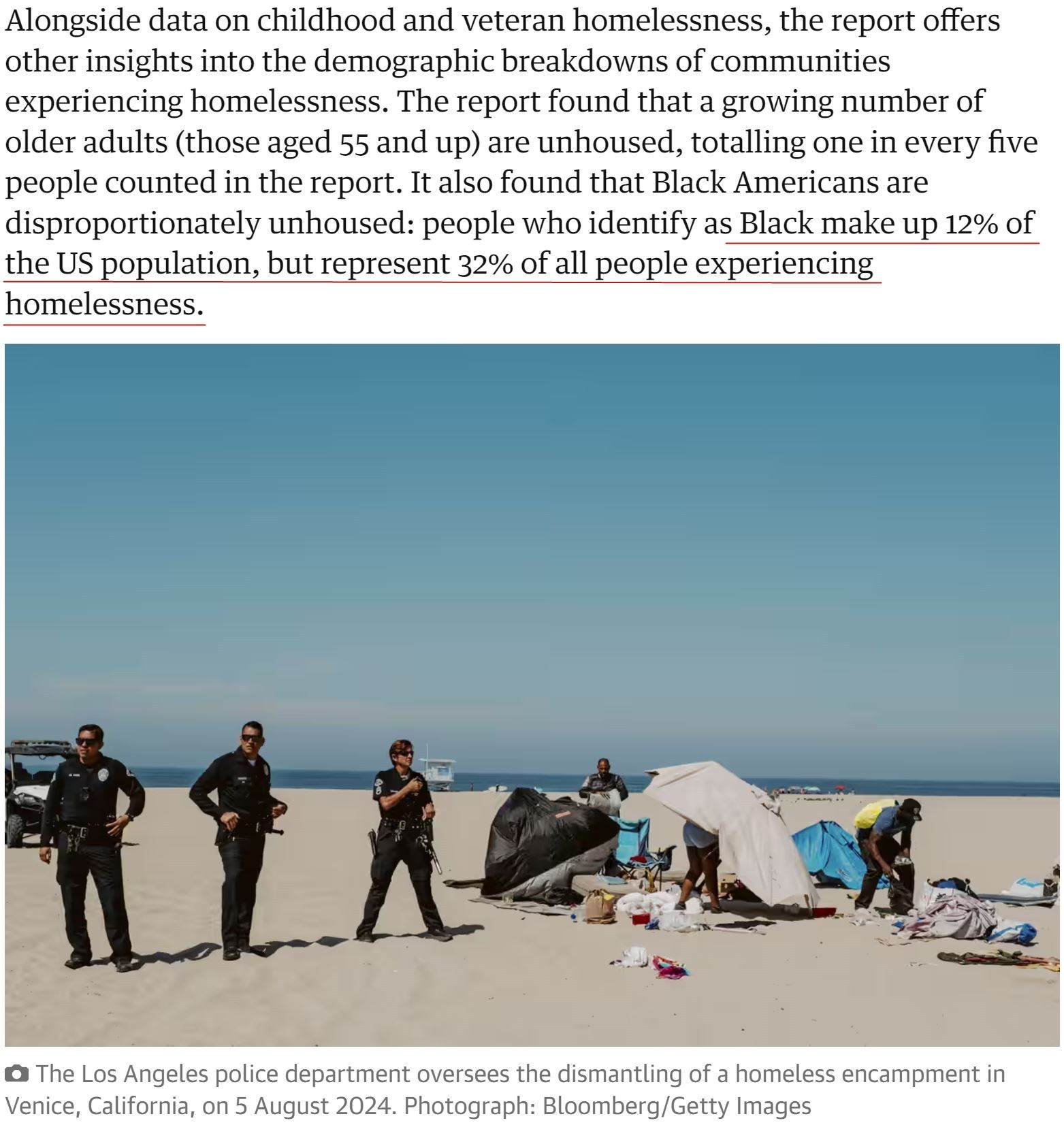 与此同时,美国的贫困问题还有着鲜明的种族色彩。有数据显示,大约32%的无家可归者是非洲裔,尽管非洲裔只占美国人口的约12%。