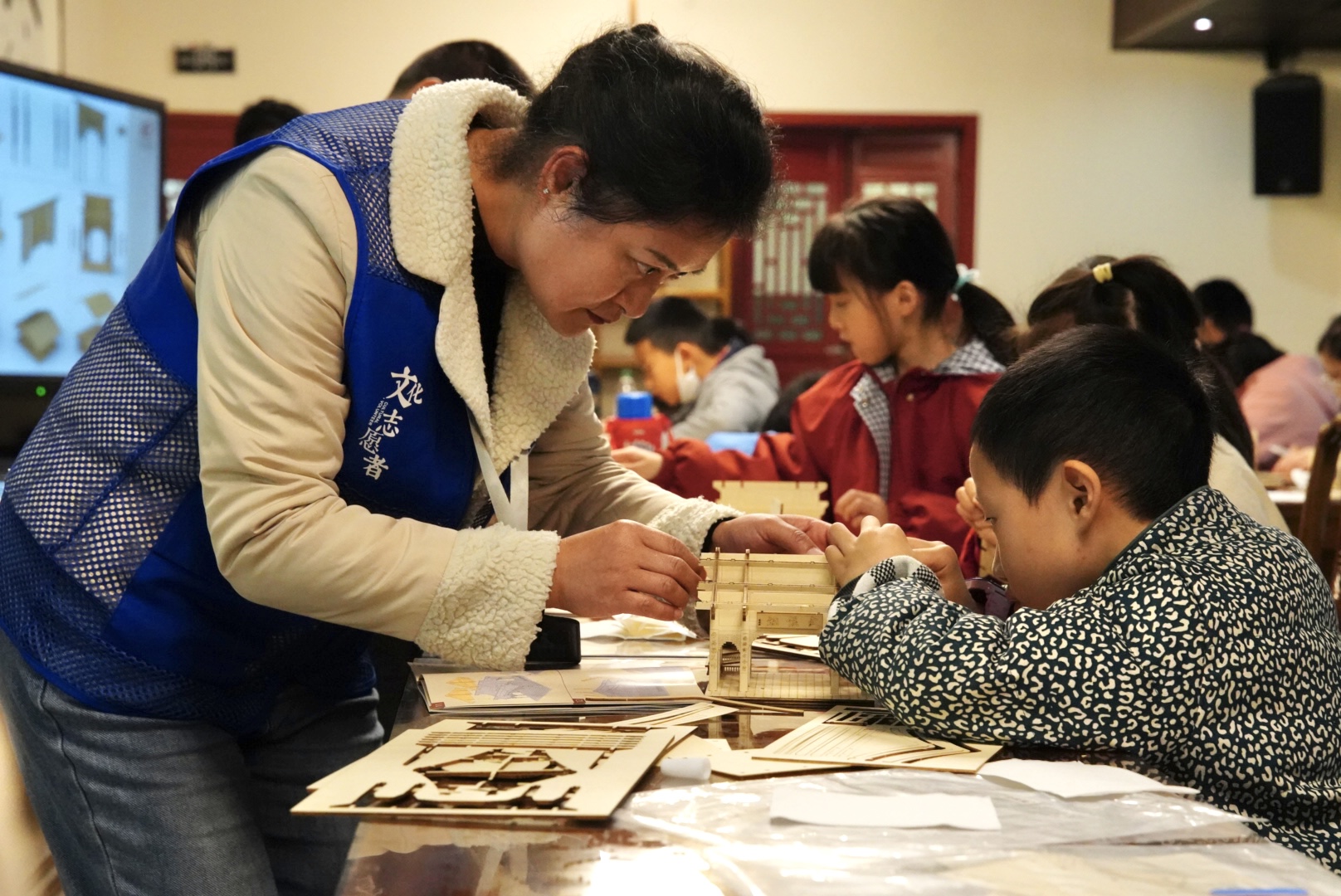 成都武侯祠博物馆文化志愿者帮助孩子们搭建模型