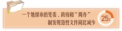 从发文上看,今年1—11月,市委、市政府和“两办”制发规范性文件39份,同比减少了25%。