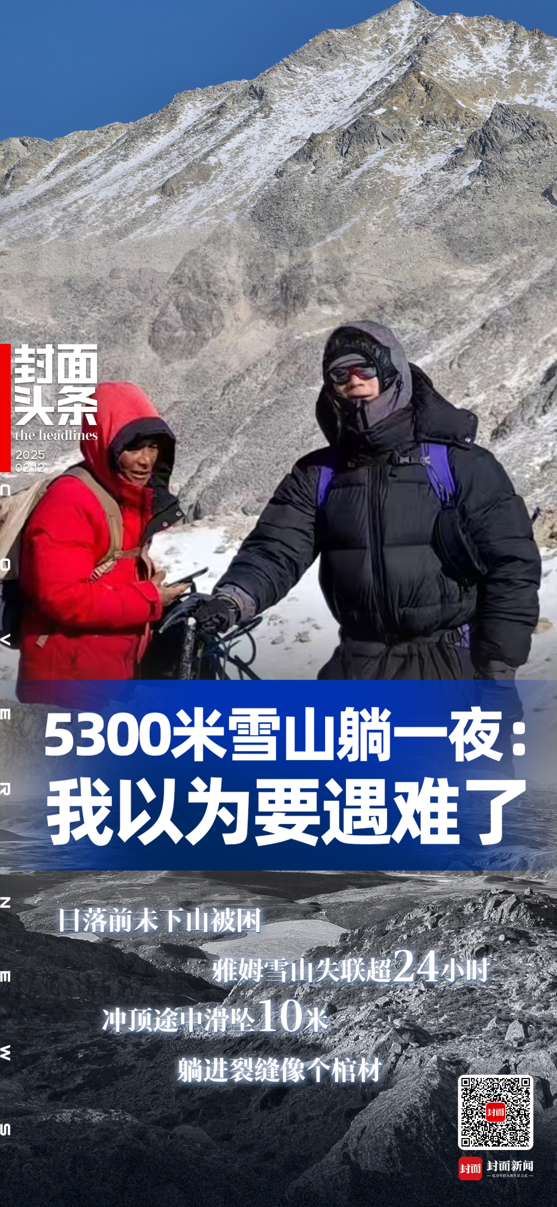 今年2月1号,志鹏独自一人向雅姆雪山山顶发起冲击,但因各种失误,他没能在太阳落山前下山。“救援队就在远方,但我没有灯也喊不答应,很绝望。”在雪地一处裂缝躺了一夜,志鹏总算在天明,等来了上山的向导。“你是雅姆雪山失联后,第一个被救出来的人。”这名向导告诉志鹏。