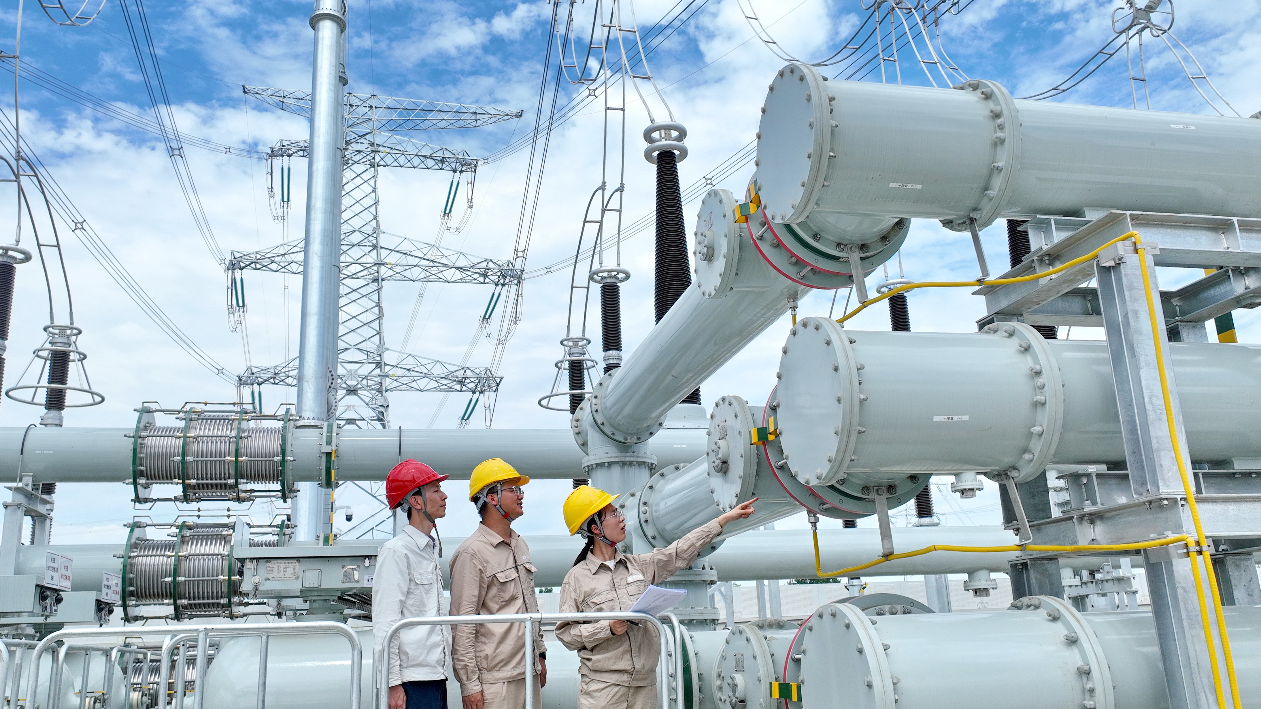 国网成都供电公司工作人员对变电站GIS设备进行投产前核对(陈翔摄)