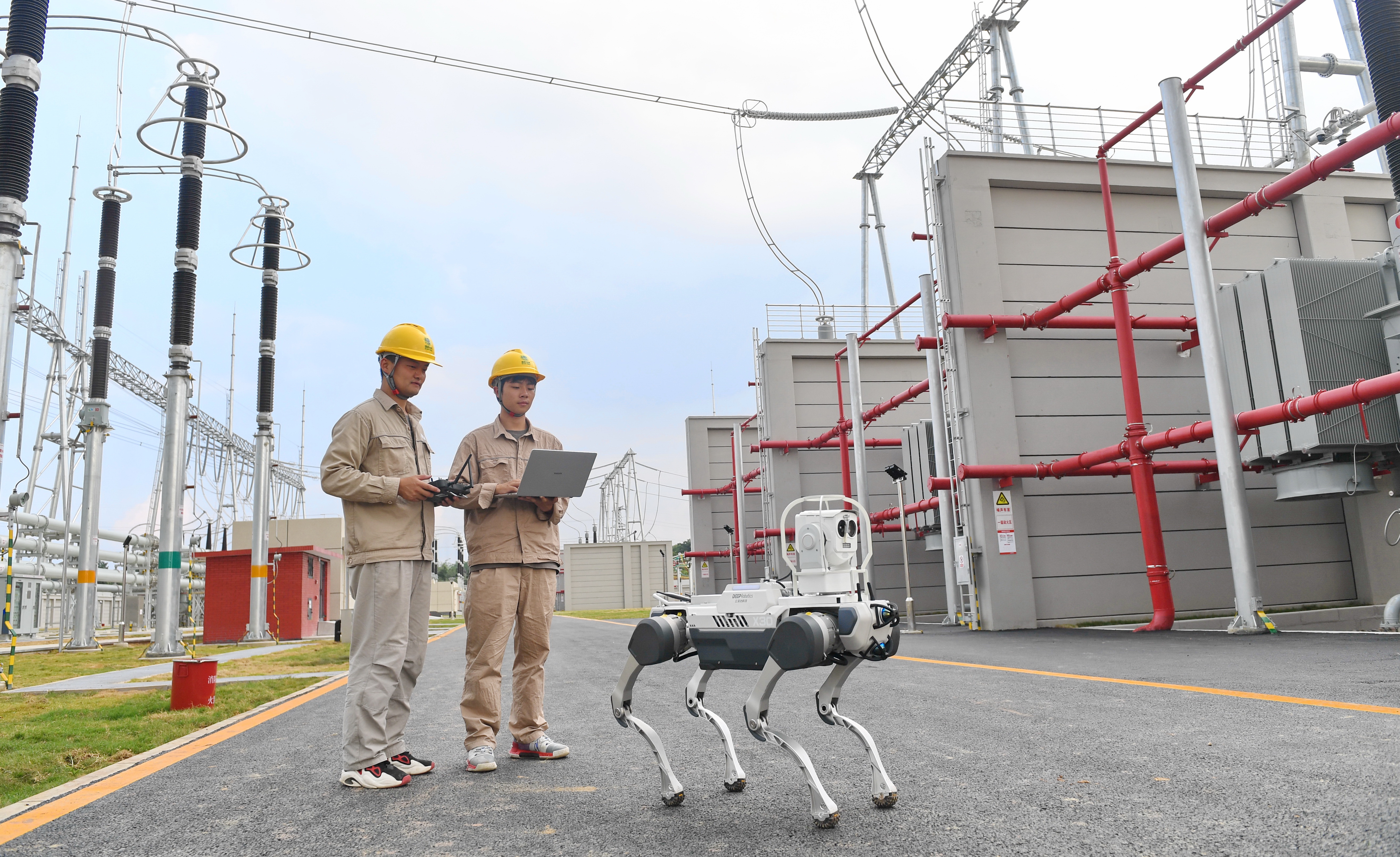 国网成都供电公司工作人员操作“四脚机器狗”对变电站设备进行巡视(陈翔摄)