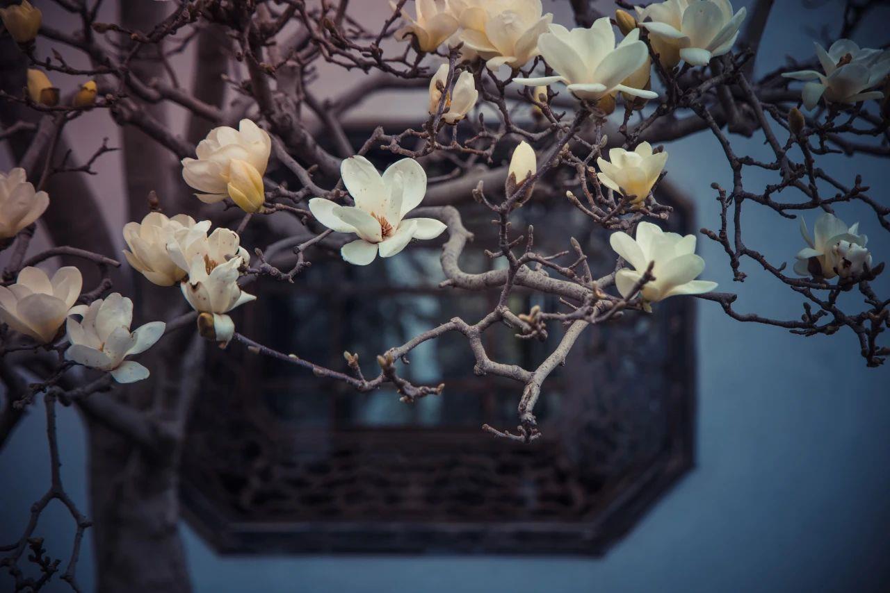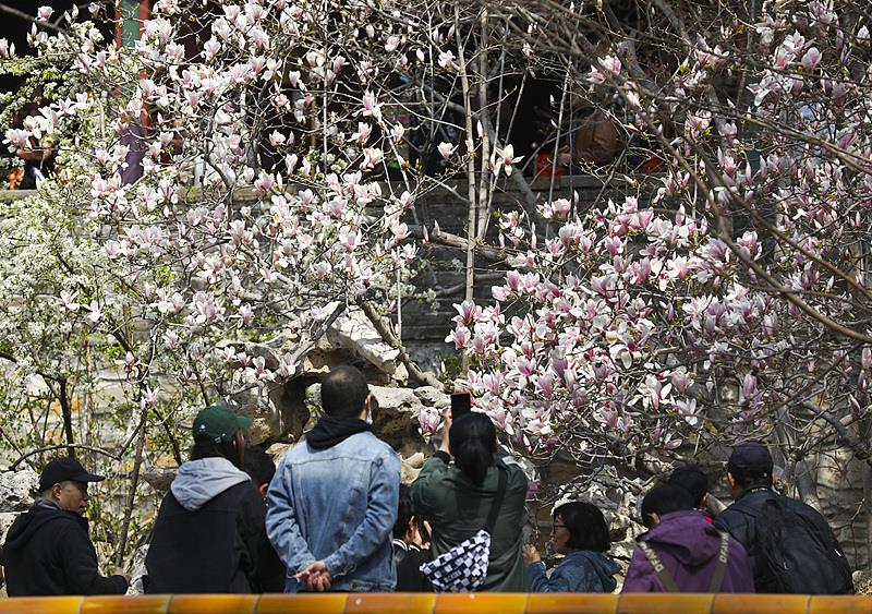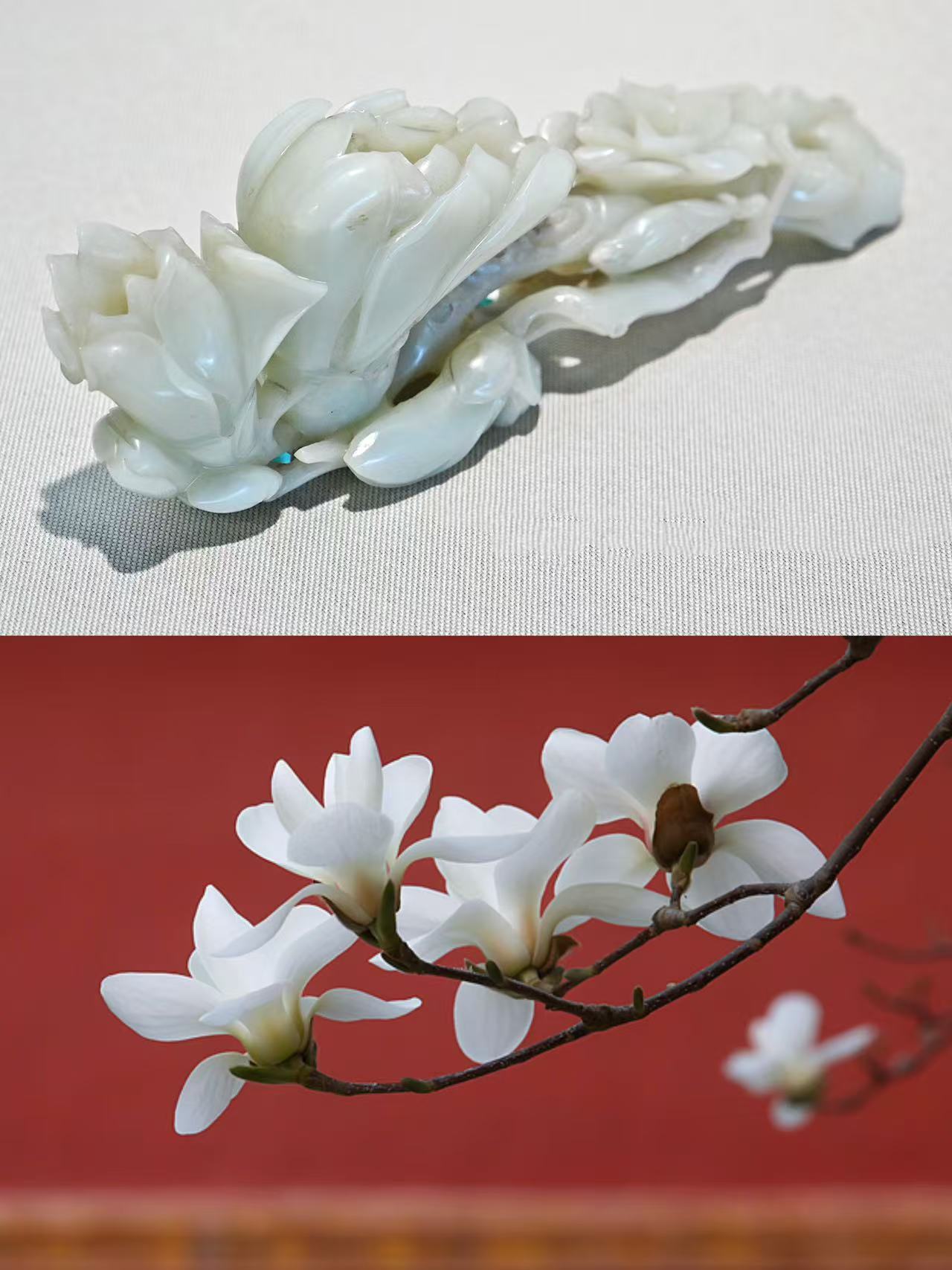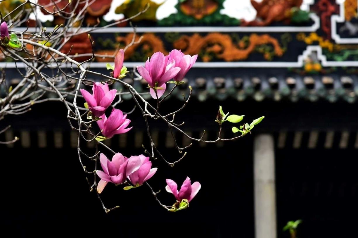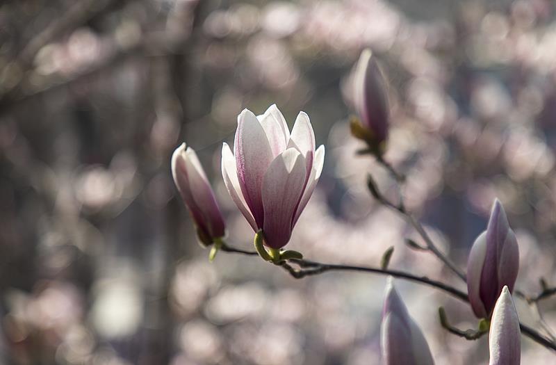 其中两株紫中带白、花俱双色的“二乔玉兰”