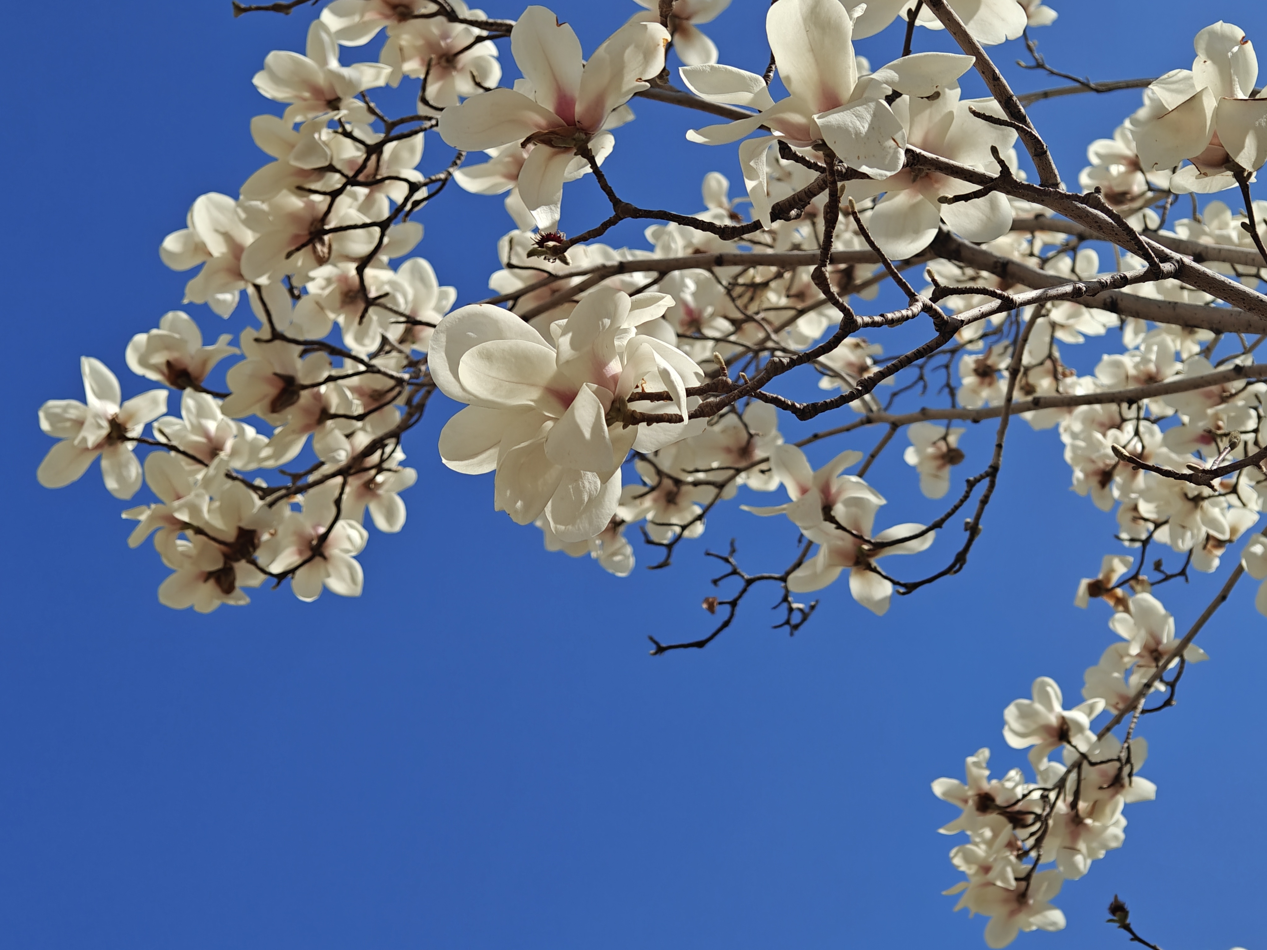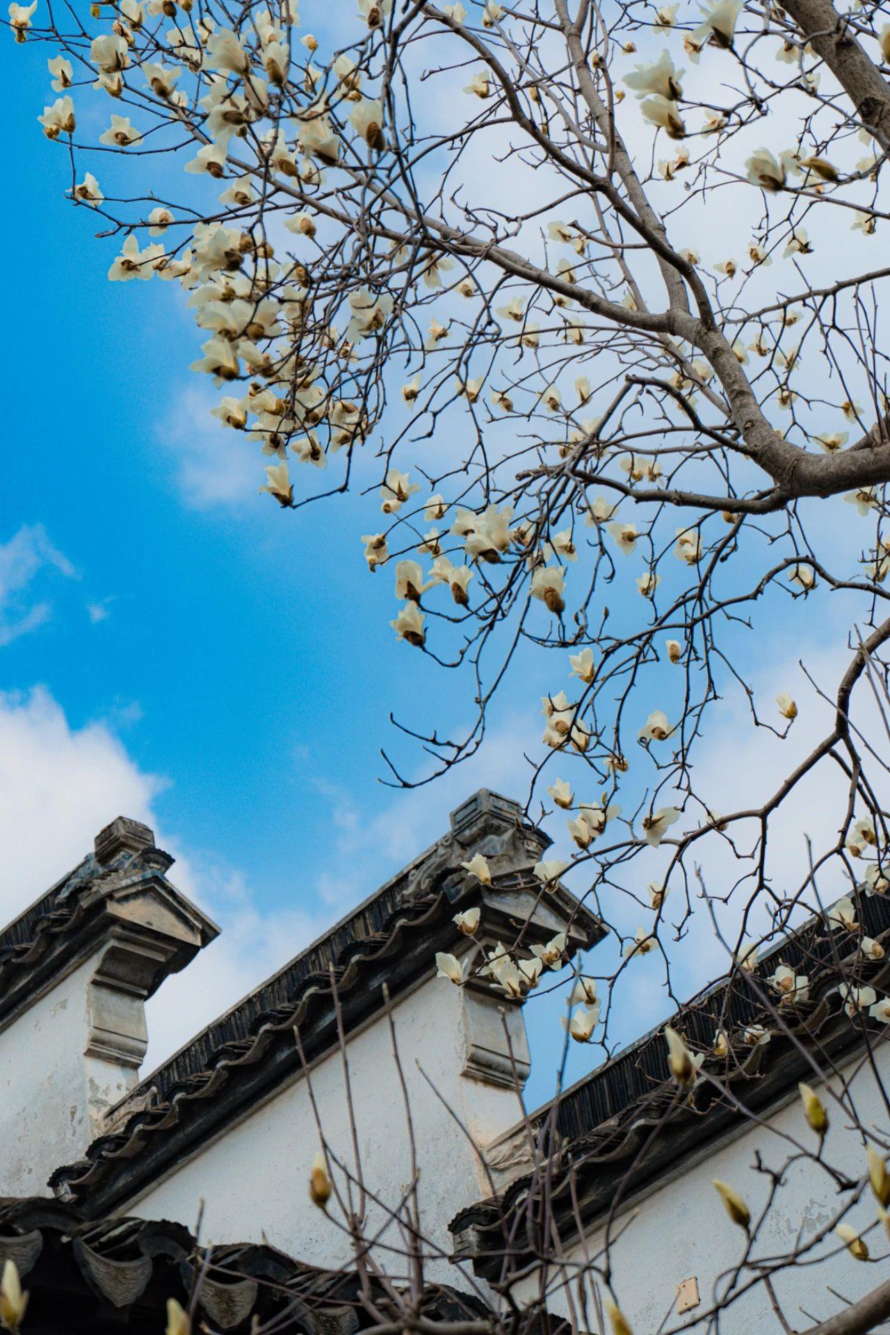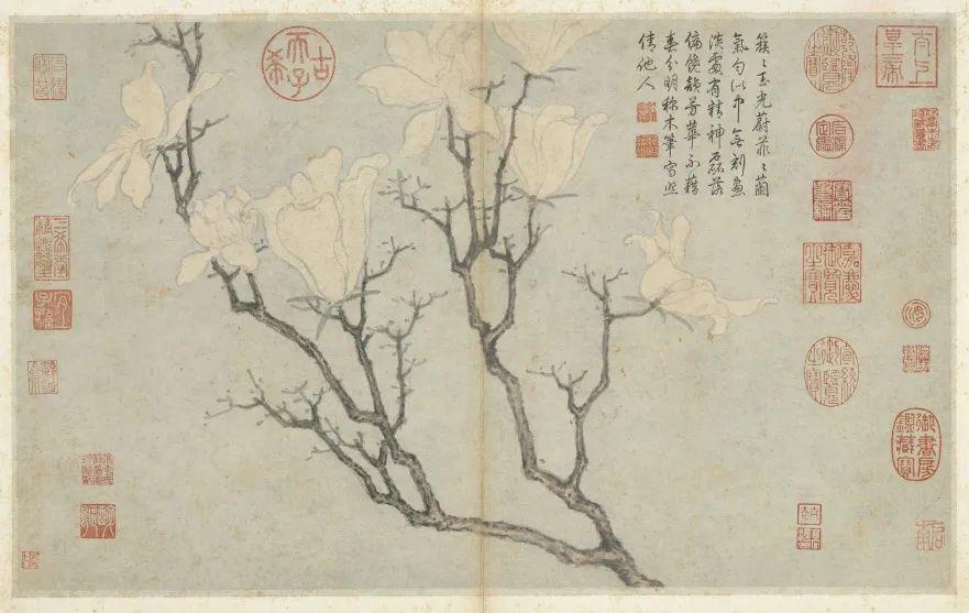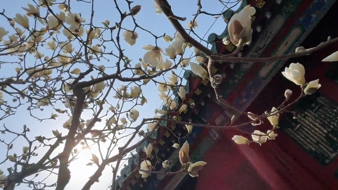 其中两株紫中带白、花俱双色的“二乔玉兰”
