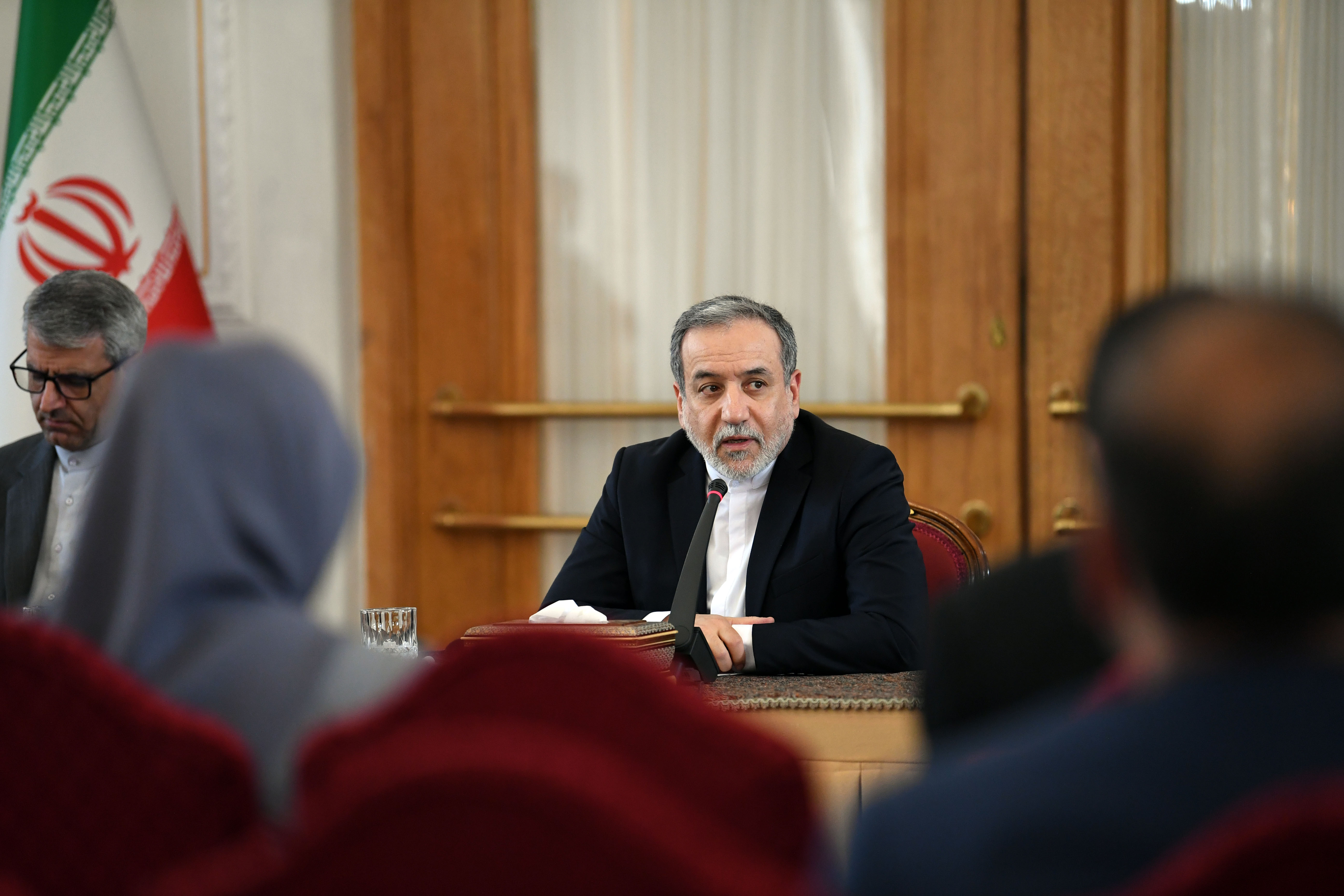 10月5日,在伊朗首都德黑兰,伊朗外交部长阿拉格齐出席记者会。新华社记者沙达提 摄