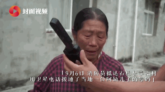 9月6日,消防员抵达石棉县幸福村,用卫星电话拨通了当地一位阿姨儿子的号码。听到声音的那一刻,这位母亲泪流满面。