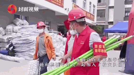 灾区得妥镇的年轻人陶鑫,地震时靠着邻居帮忙撞开门才逃离家中。在确认直系亲属平安后,他和其他年轻人一起加入了救灾队伍。