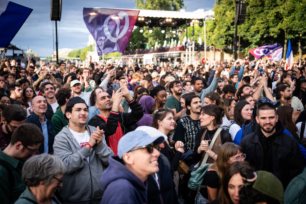 7月7日,支持者出席法国极左翼政党“不屈法国”在巴黎举行的选后集会。新华社发(何塞·博萨斯摄)