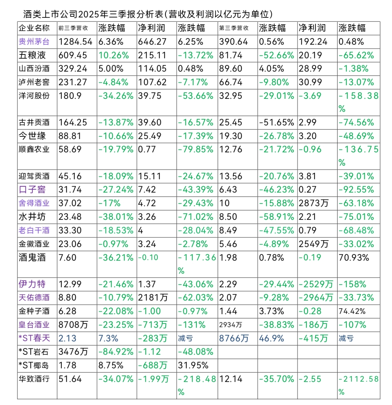 今年以来,白酒市场已发生深刻变化,这从白酒上市公司三季报的数据表现就可明显看出来。