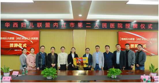 11月16日,华西妇儿联盟授牌仪式在内江市第二人民医院规培大楼6楼会议室举行。