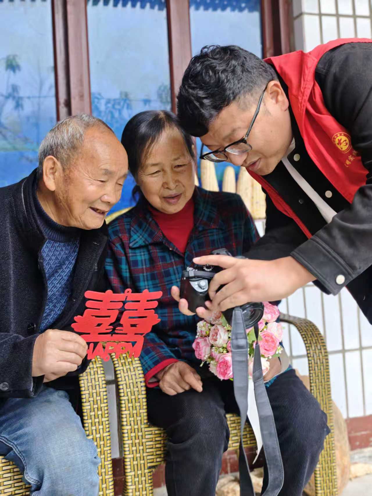 “一束花、一张照,花不了多少钱,却能让老人们感受到实实在在的温暖。”李家镇宣传委员张丹蹲在地上,细心帮老人捡起掉落的喜字贴,“我们就是想通过这样的‘小活动’,让老人们知道,他们的幸福日子,大家一直记挂着。”