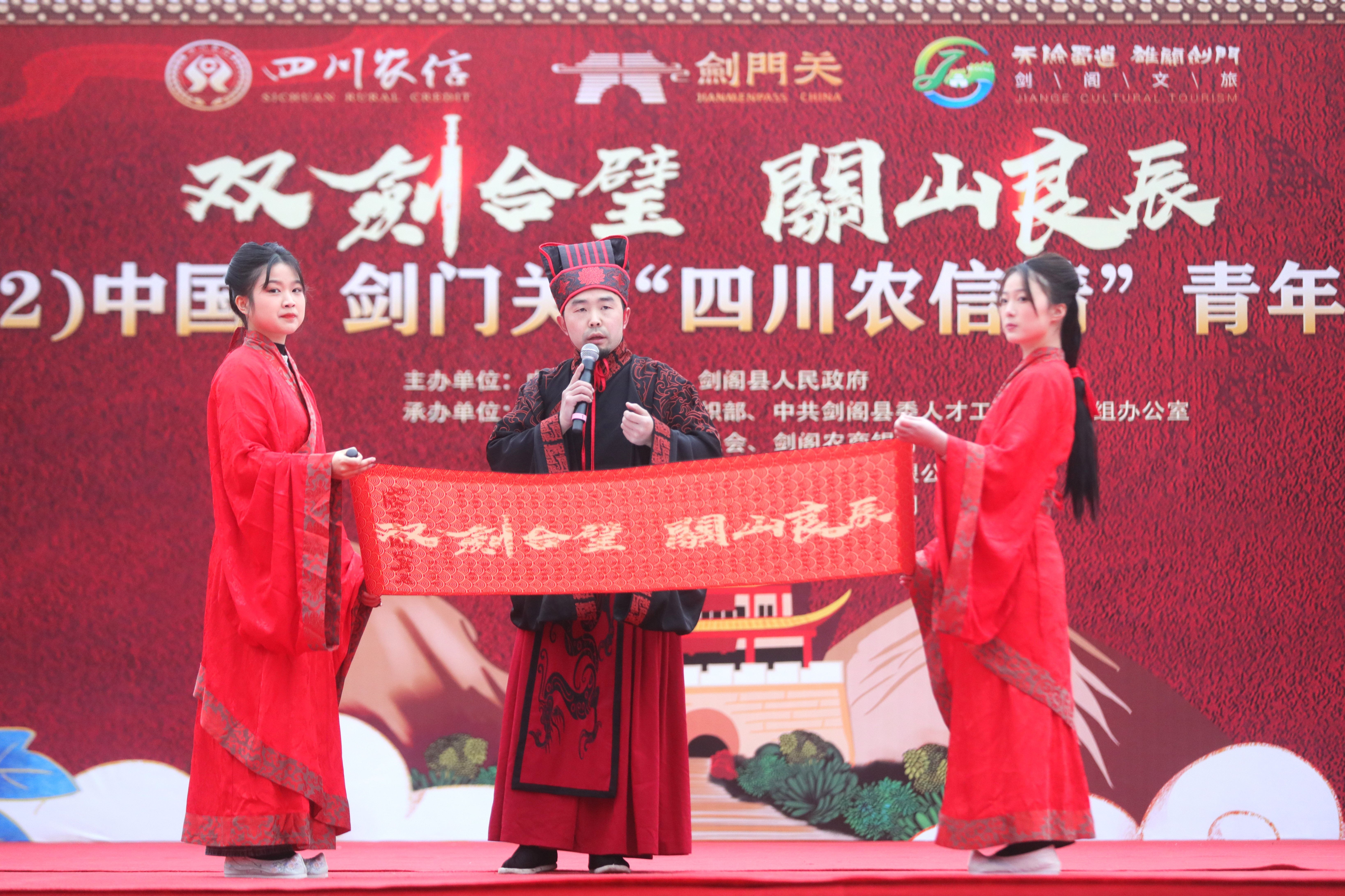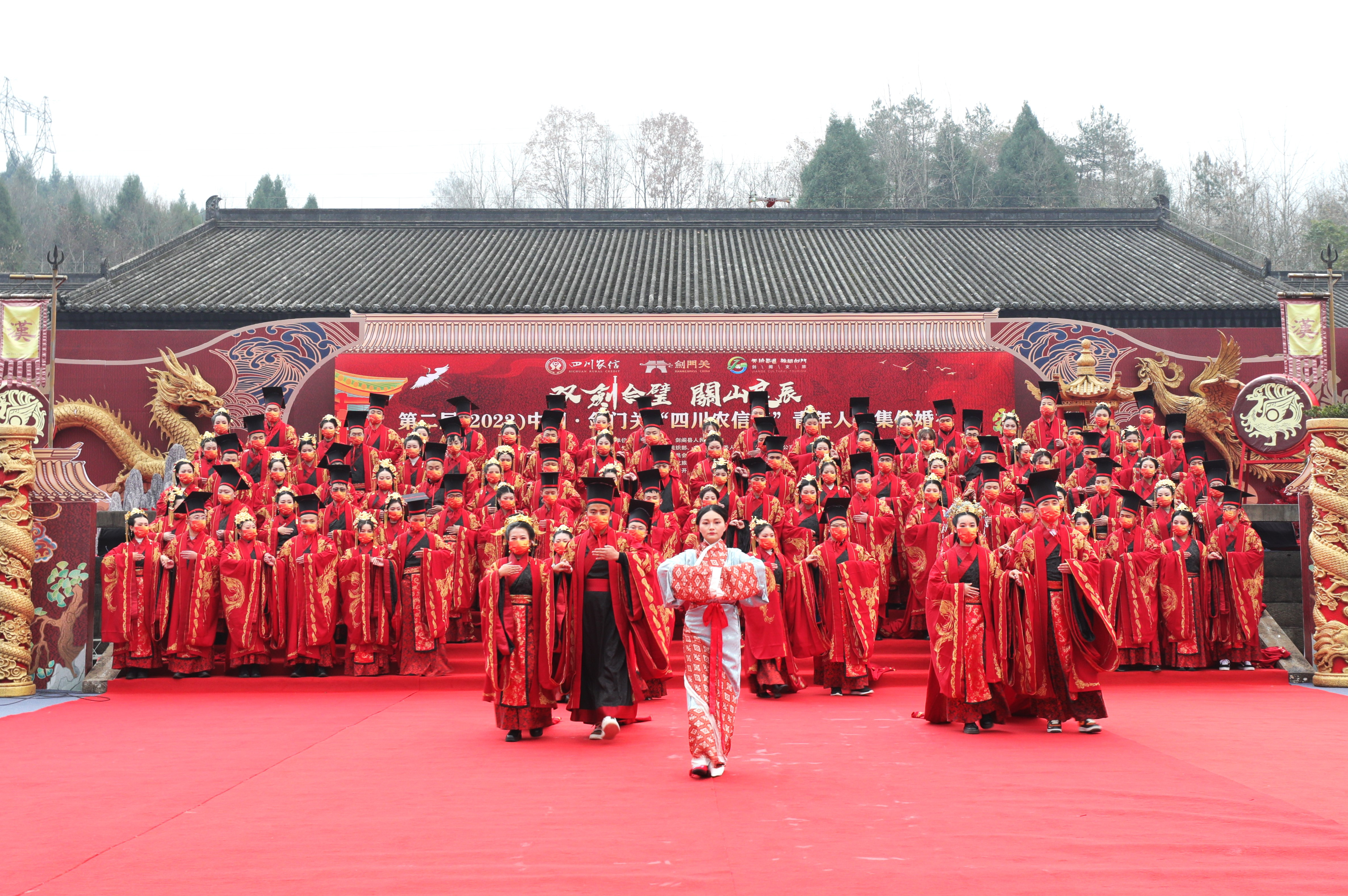 苍松翠柏下,亮眼的中国红点亮了矗立千年的蜀道,鼓乐齐鸣,鸾歌凤舞,盛大喜庆的婚礼仪式不仅承载着对新人们的美好祝福,体现出人们对新年的无限期许,更是剑阁县对青年人才的贴心关爱。
