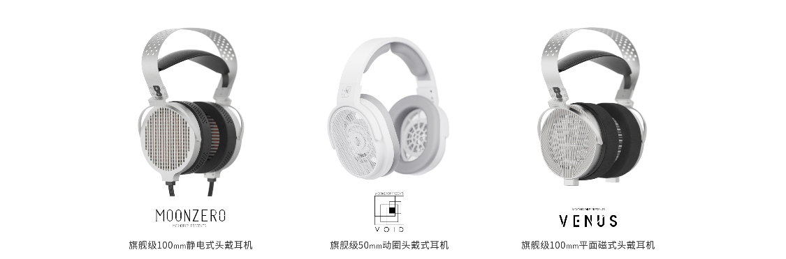 MOONZERO静电耳机,采用了直径为100mm、厚度仅为1.35μm的圆形大振膜单元,大面积振膜在受力均匀的情况下可以快速响应每一个细节。框架使用碳纤维复合材料CNC加工,可减少外界振动影响同时实现轻量化。非线性失真、线性失真均达HI-END水平,贴近真实声场和音色。VENUS平面磁式头戴耳机,与MOONZERO声学耦合结构一致,将不受力区域集成在固定区域中,同样的大振膜可以有效还原音色。首创单元-外壳一体式结构,大幅度地加强了耐用性可靠性。水月雨相关负责人表示,“总的来说,动圈式、静电式和平面磁式作为头戴耳机三大主流扬声器单元,各有自身的优点,消费者们可根据需求来进行选择。”