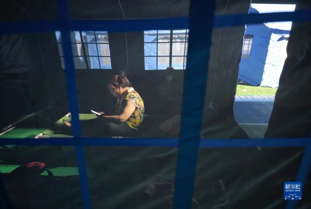 6月1日,在四川雅安市芦山县太平镇太平中学安置点内,一位受灾群众在帐篷内休息。新华社记者 刘坤 摄