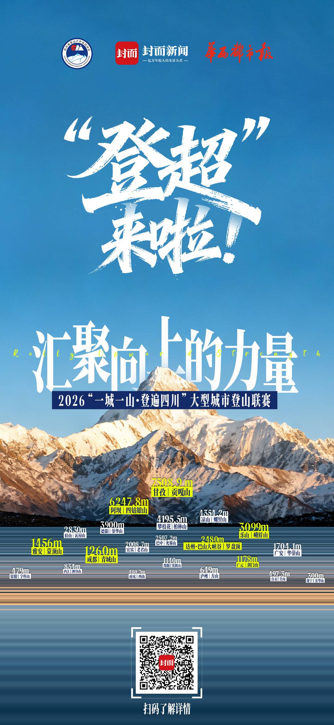 2月25日,由封面新闻、华西都市报、四川省登山户外运动协会联合主办的2026“一城一山·登遍四川”大型城市登山联赛重磅官宣。3月起,活动将正式启动。