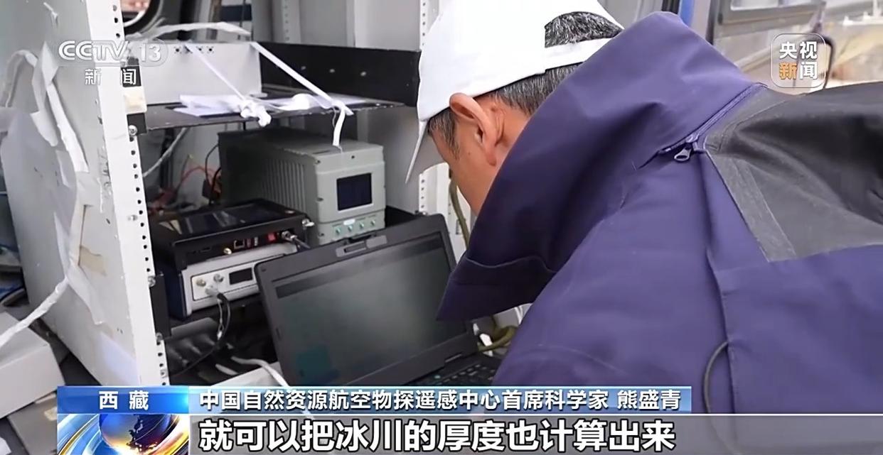中国自然资源航空物探遥感中心首席科学家 熊盛青:我们这一次用的航空物探,用了两种国产化的仪器,一种是航空重力仪,一种航空冰雷达,就可以把冰川的厚度也计算出来。我们国家冰川大部分都分布在高山、高寒地区,人很难到达,并且还很危险,所以说必须采用现代的办法探测冰川。