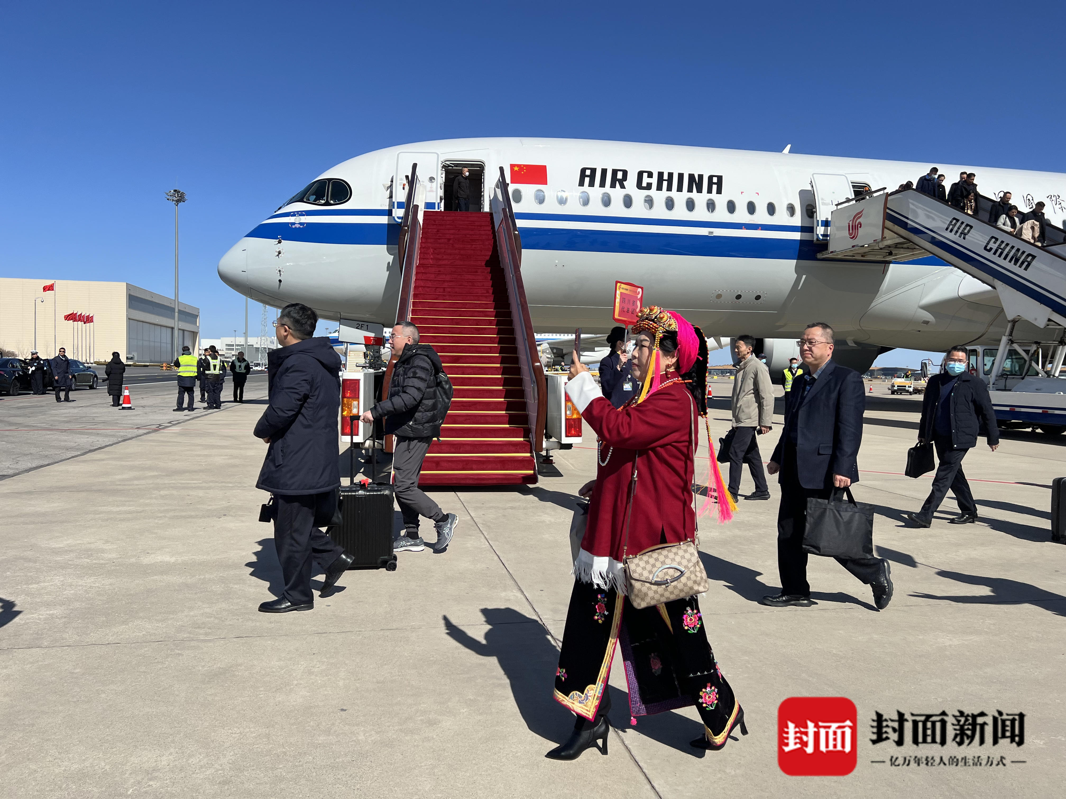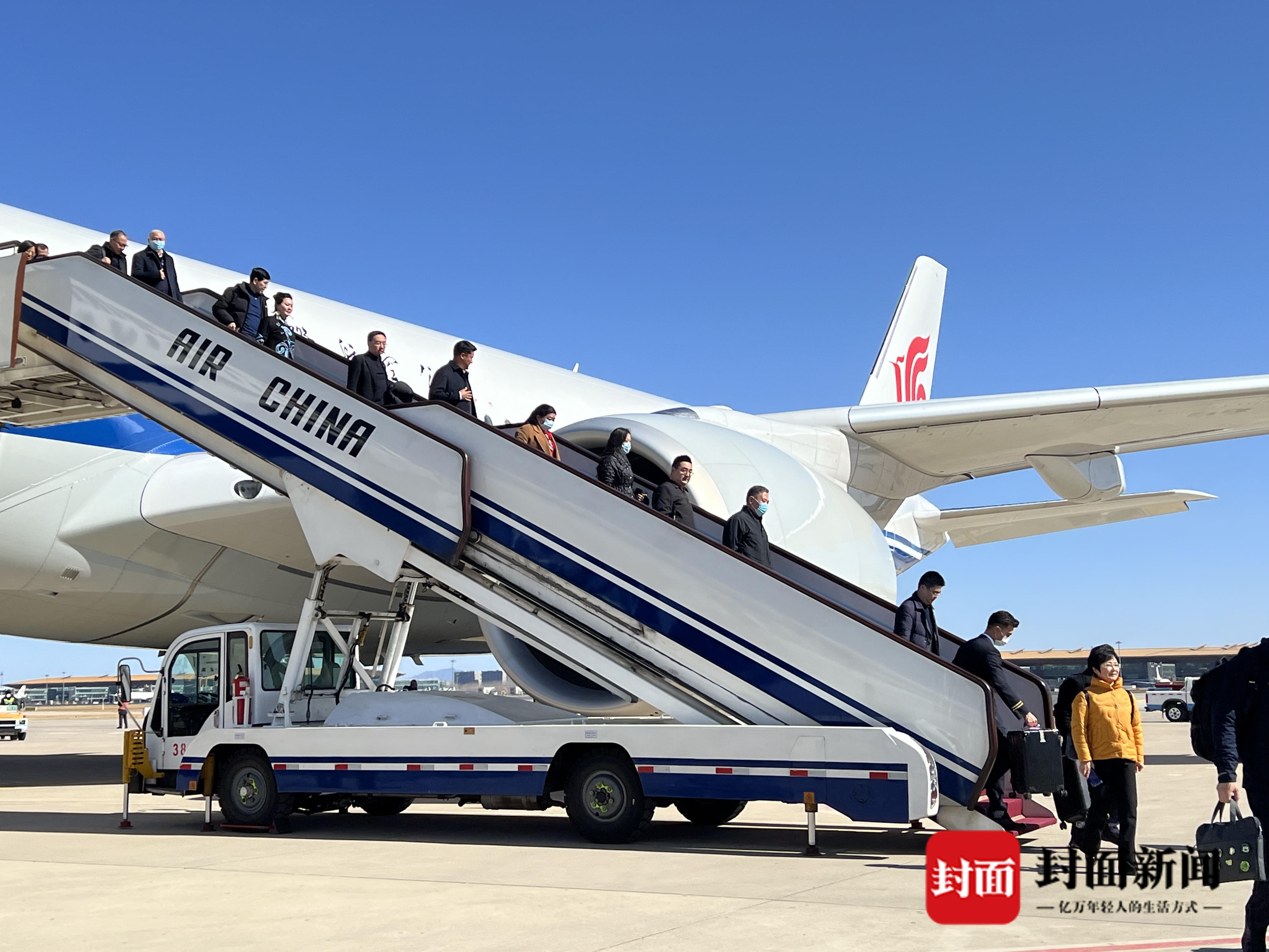 3月3日上午,出席十四届全国人大二次会议的四川代表团代表搭乘班机顺利抵达北京。