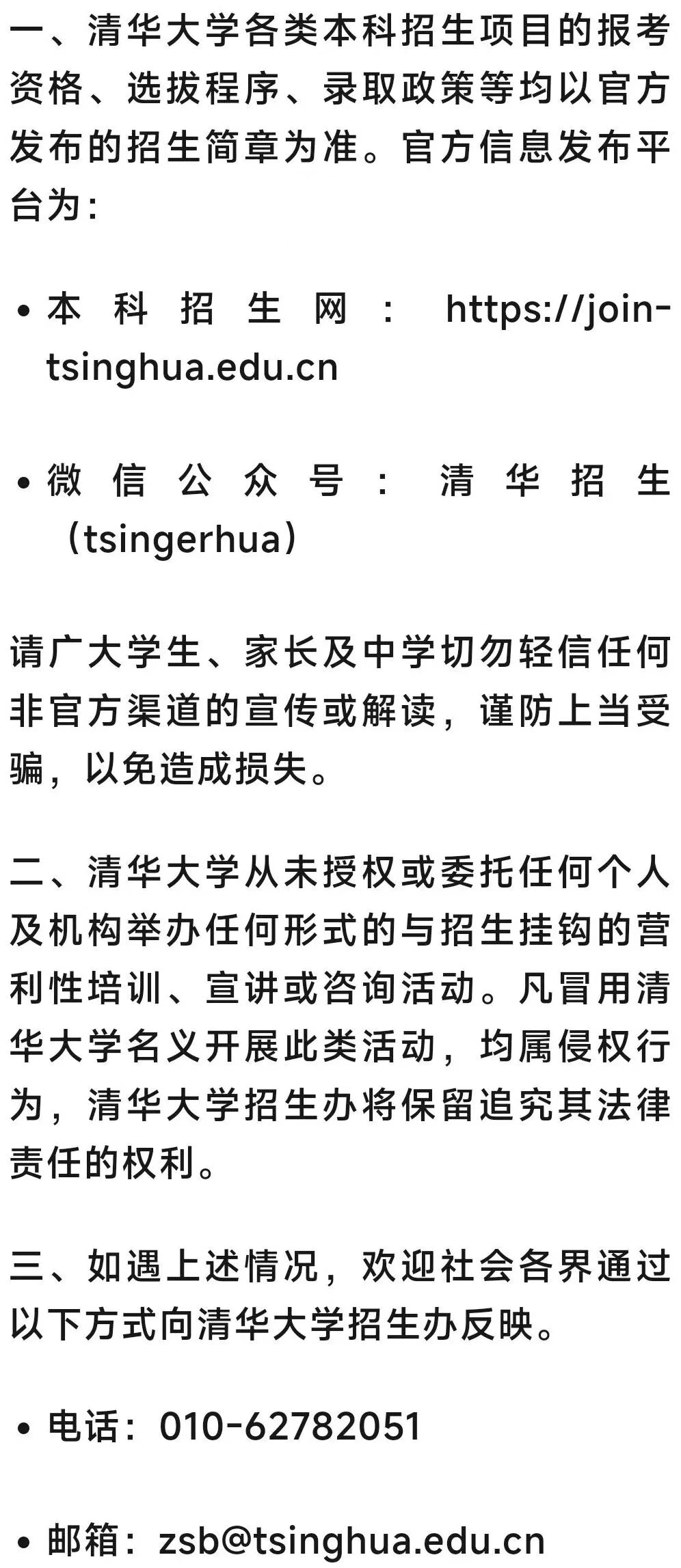 为此,12月24日,清华大学招生办公室就本科招生相关工作发布如下郑重声明: