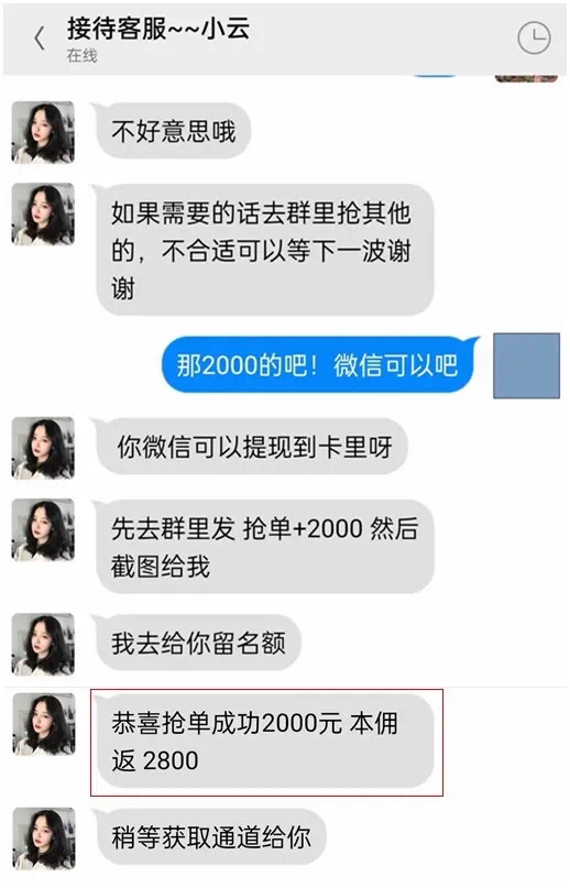 见许久未拿到返利,本金也赔了进去,王女士的脑海中浮现出近期看到的各种反诈宣传,才反应过来自己上当受骗了,但她并没有选择及时报警,而是寄希望于骗子,希望对方能够把2000元钱退给自己。于是,骗子抓住王女士的这种心理对她展开了第二轮攻击。