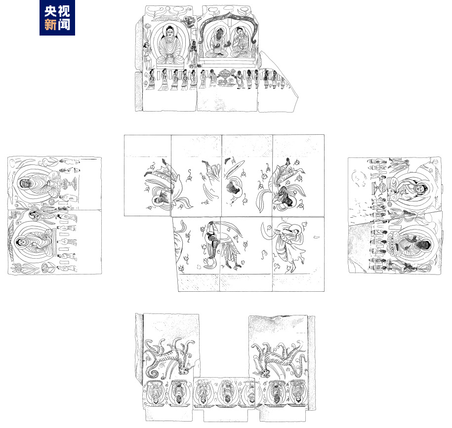 近日,山西省考古研究院对外公布大同仝家湾北魏邢合姜墓石椁考古资料,该墓是山西省首次发现的北魏平城时期全景式反映佛教题材的石椁壁画墓葬,出土了一座基本完整的石椁,石椁四壁及顶部绘有释迦多宝佛、七佛、供养人、飞天等佛教题材壁画,布局完整,并残存彩绘。
