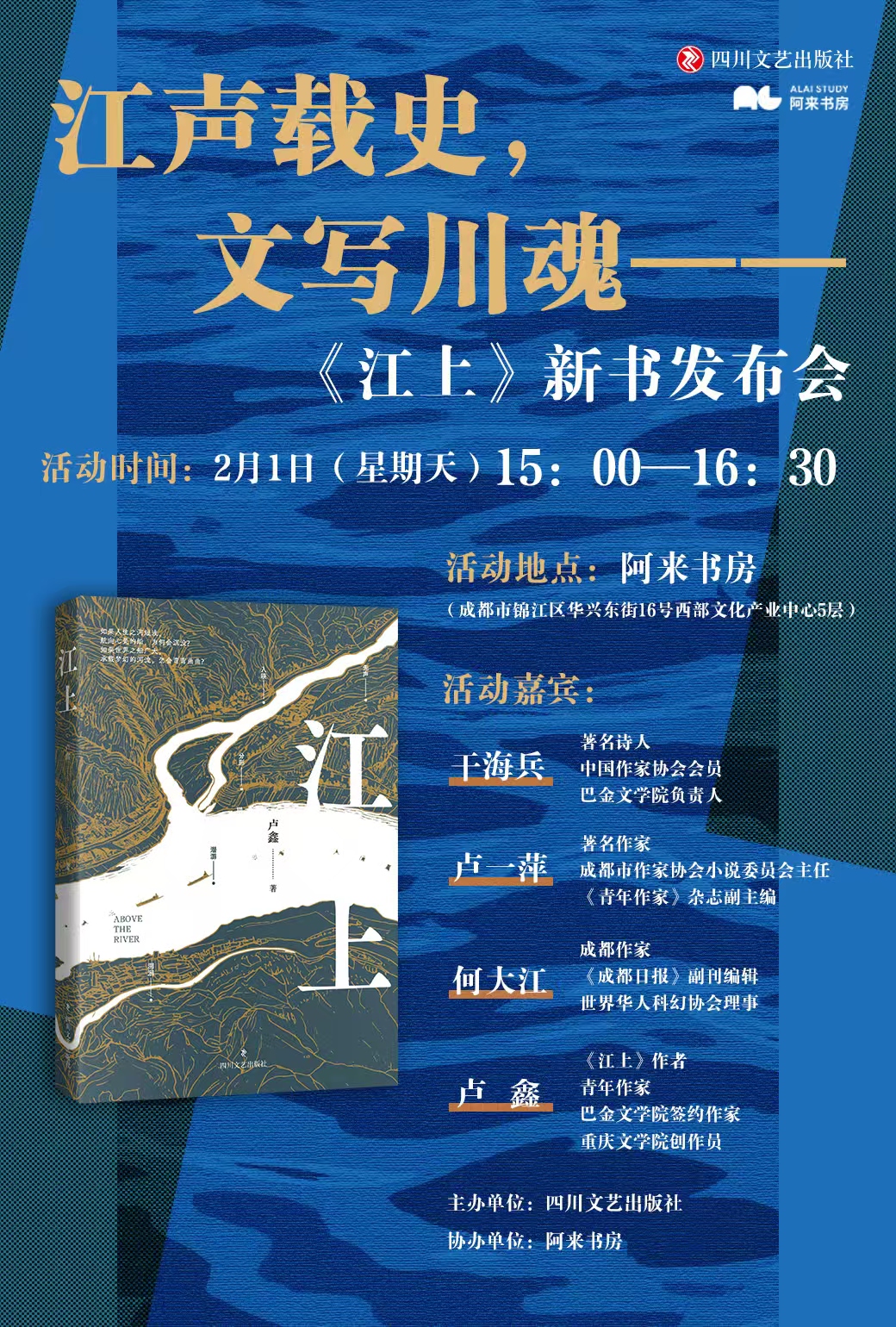 2月1日下午,由四川文艺出版社与阿来书房联合主办的“江声载史,文写川魂——《江上》新书分享会”在阿来书房举行。历史题材长篇小说《江上》由90后青年作家卢鑫创作,系四川文艺出版社青年作家品牌“望川”推出的第三部重点作品。巴金文学院负责人、诗人干海兵,《青年作家》杂志副主编、作家卢一萍等嘉宾,与作者卢鑫共聚一堂,围绕作品创作、历史叙事、地域文学表达等议题展开深度对谈,引领现场读者一同探寻历史小说的当代表达与精神内核。