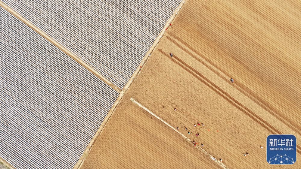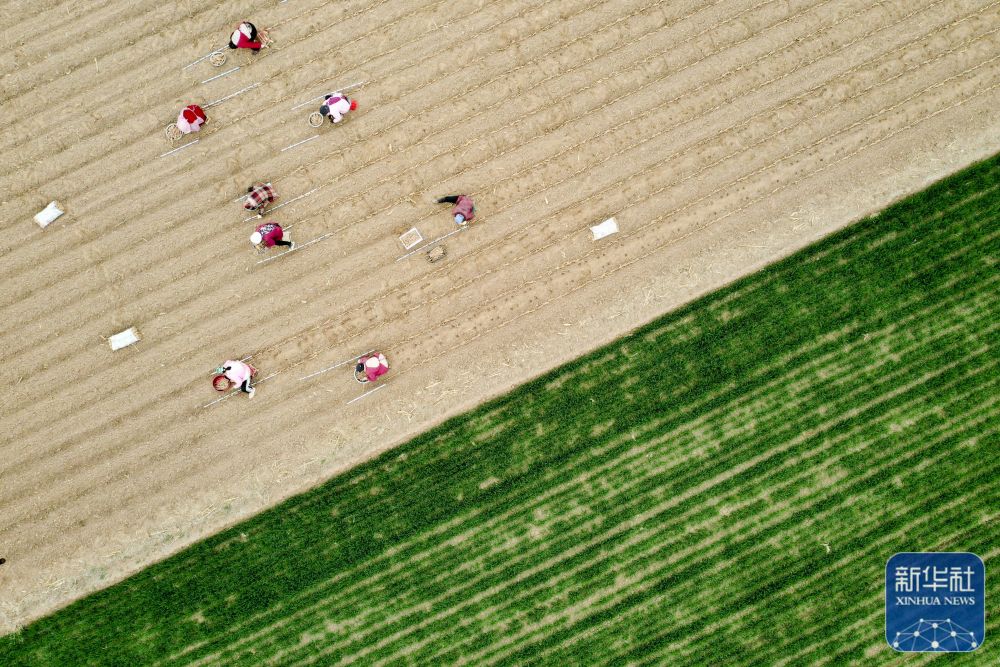 3月17日,河南省焦作市温县黄庄镇南韩村农民在田间种植铁棍山药(无人机照片)。新华社发(徐宏星摄)