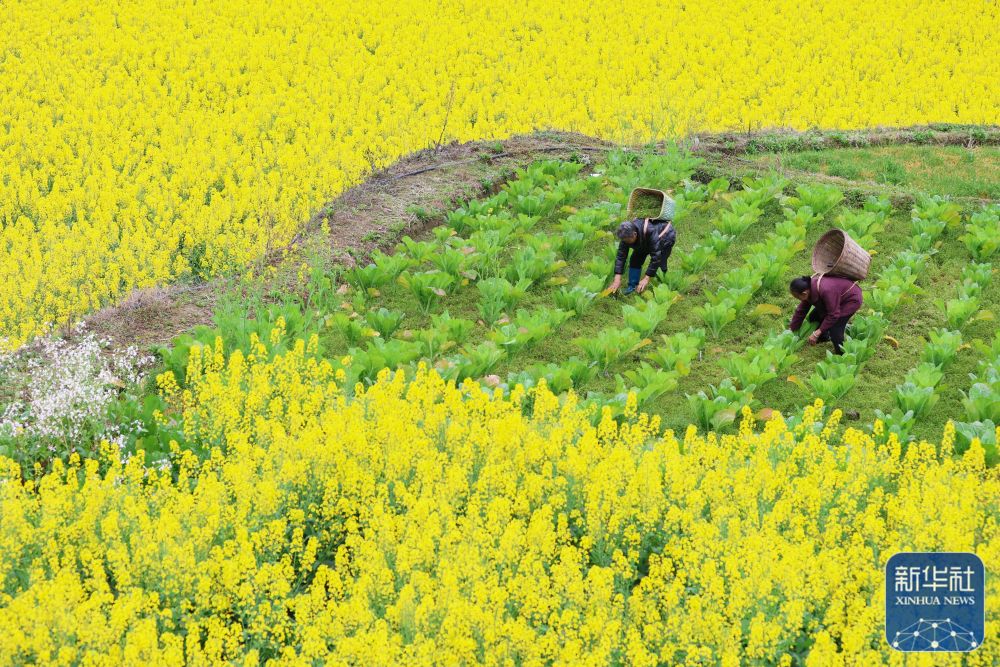 3月17日,在贵州省黔东南苗族侗族自治州岑巩县注溪镇周坪村,村民在田间劳作。新华社发(罗慧摄)