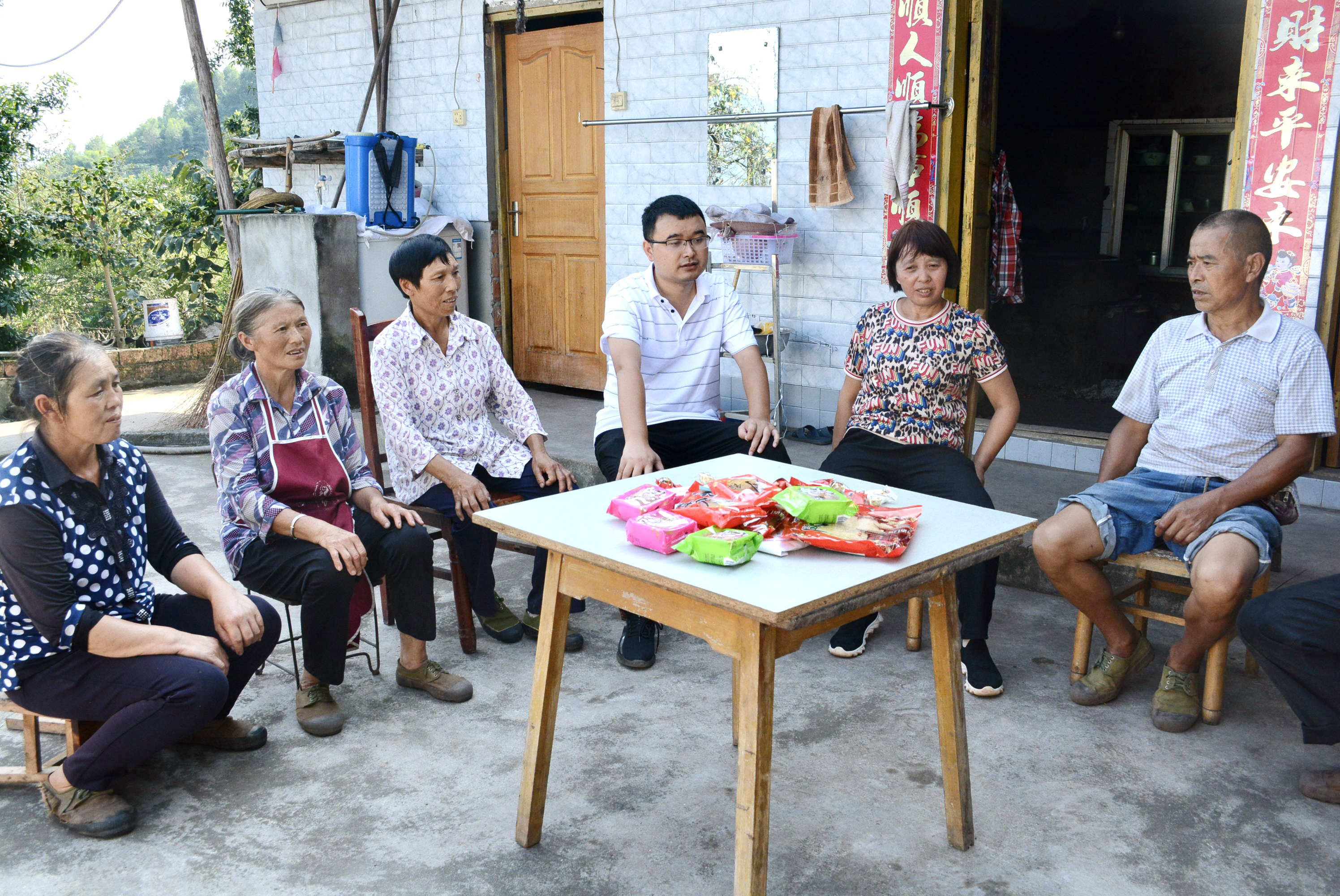 和村民一起过中秋,聊家常