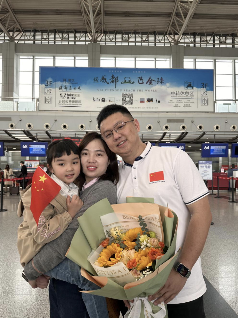 你和妈妈放心,爸爸会照顾好自己,圆满完成任务,期待回国我们团聚的那天。