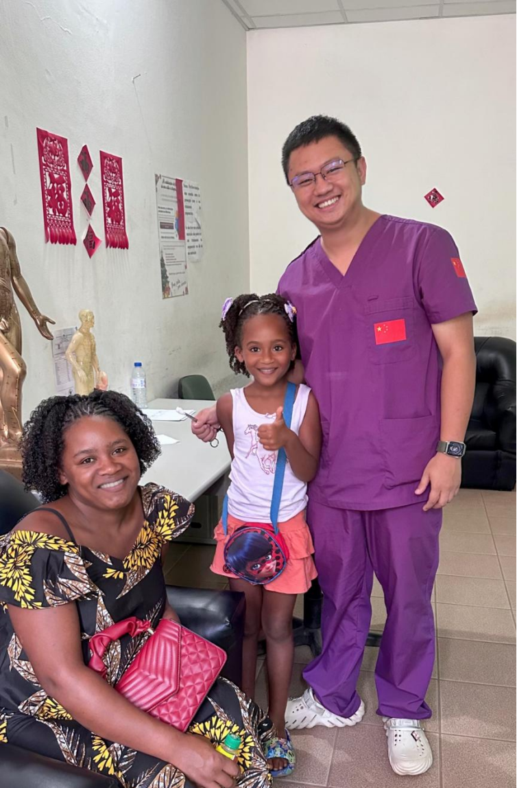 爸爸的针灸治疗在圣普得到了很多人的认可,同时,我还会和医疗队其他的叔叔阿姨们参与到巡回义诊当中。我们把对家庭的爱与思念传递给圣普的患者,在他们康复的笑容中,我感受到了中非大家庭的温暖,也有了更多的动力投入到工作中。