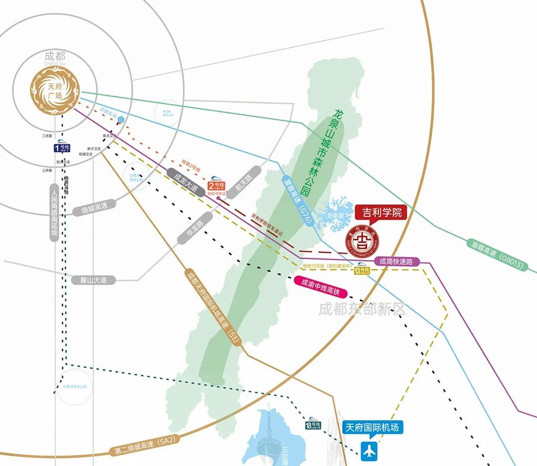 • 距国家级国际航空枢纽—成都天府国际机场直线距离18公里