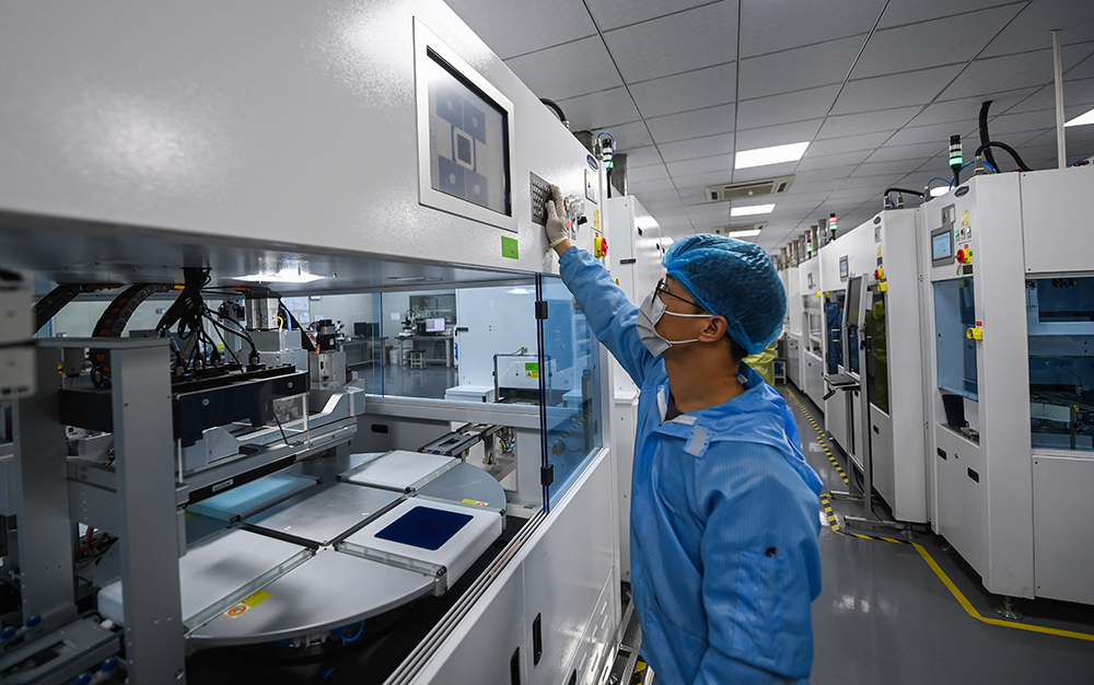 在杭州正银电子材料有限公司的研发实验室内,自动化设备在进行光伏板的丝网印刷。新华社 资料图