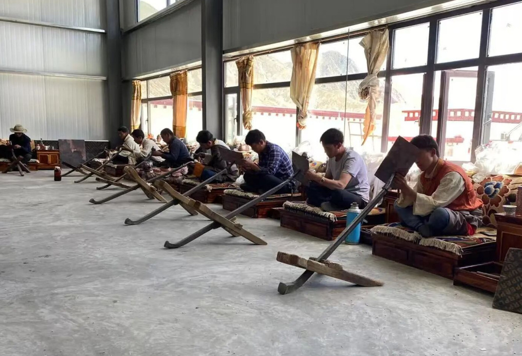 在南木林县艾玛乡孜东雪村铜器加工厂,锤声叮当——国家级传承人列旦桑布正带年轻人接力技艺。他自幼痴迷铜器,师从外祖父(第五代传承人赞拉多吉),24岁便精通全流程工艺,至今已培养28名徒弟。“我们守传统精髓,也顺市场需求。”列旦桑布说,孜东铜器全手工制作,涵盖制模、雕刻等十余环节,既保留宗教用品传统,更开发生活用品、旅游纪念品,他还曾参与罗布林卡、西藏博物馆文物修复,足迹遍及藏区及青海、四川等地。
