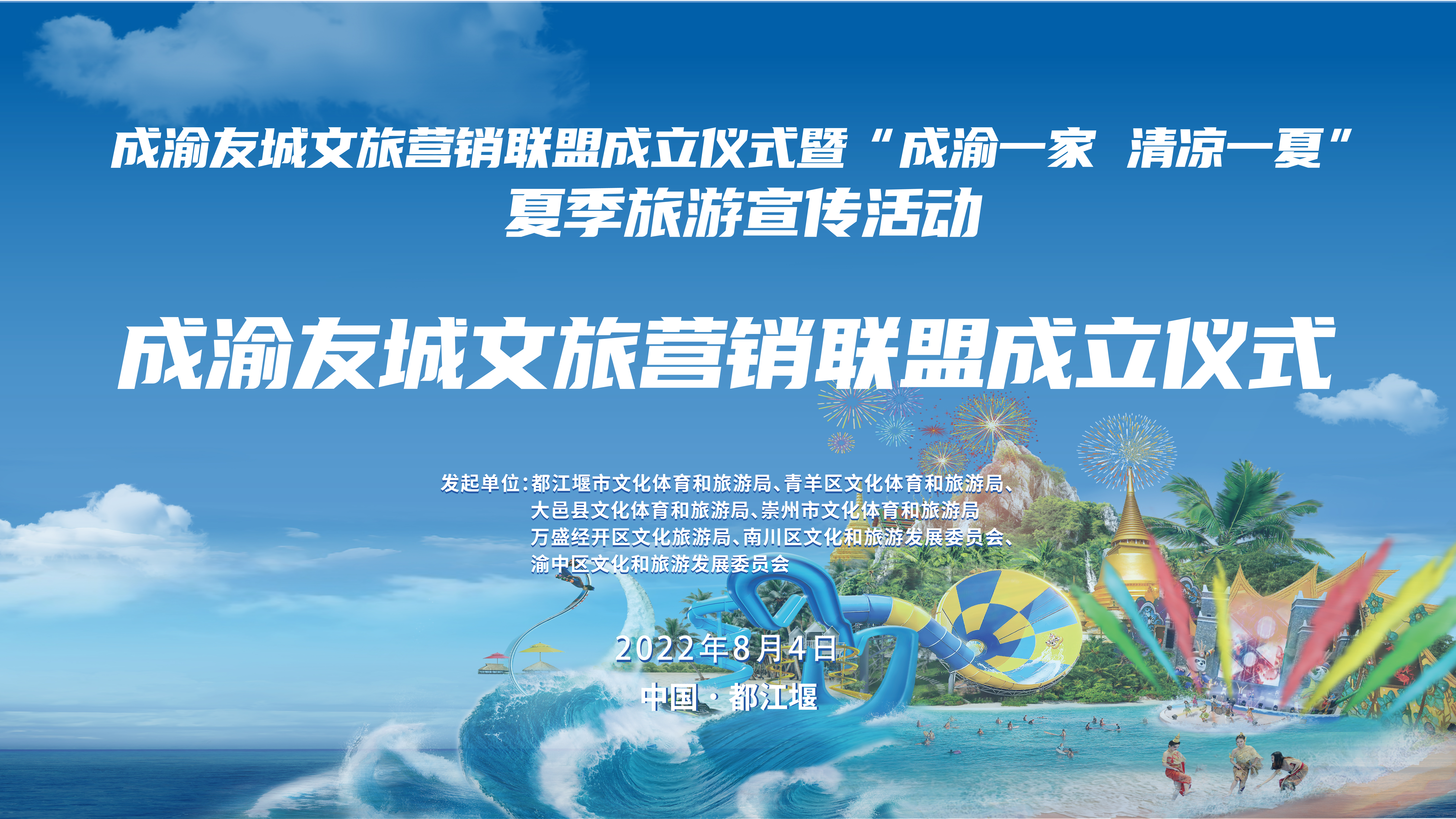 成渝友城合作共赢,激活夏季文旅市场消费潜力。8月4日,在中国传统七夕佳节之际,2022都江堰市成渝友城文旅营销联盟成立仪式暨“成渝一家 清凉一夏”夏季旅游宣传活动启动。