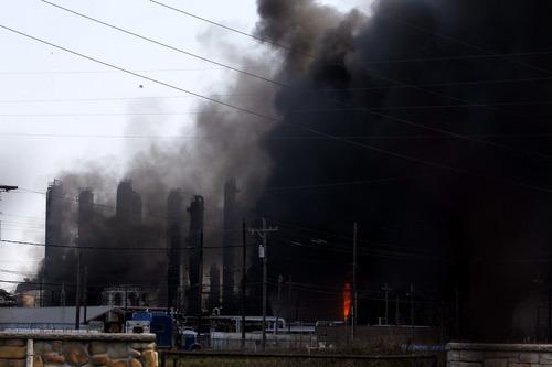 ▲2019年11月27日,在美国得克萨斯州杰斐逊县,发生爆炸的化工厂浓烟滚滚。新华社发(宋穹 摄)