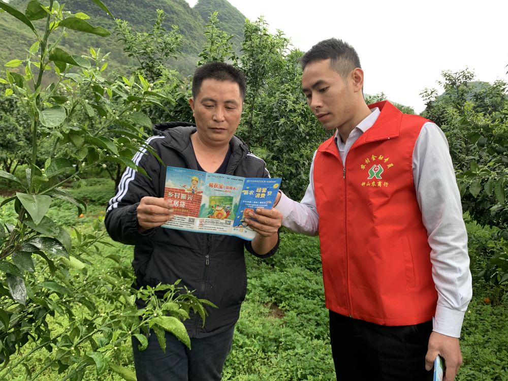 图为钟山农村商业银行金融专员到水果种植大户的生产基地宣传“桂惠贷”政策(钟山县委宣传部供图)