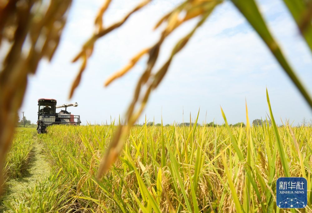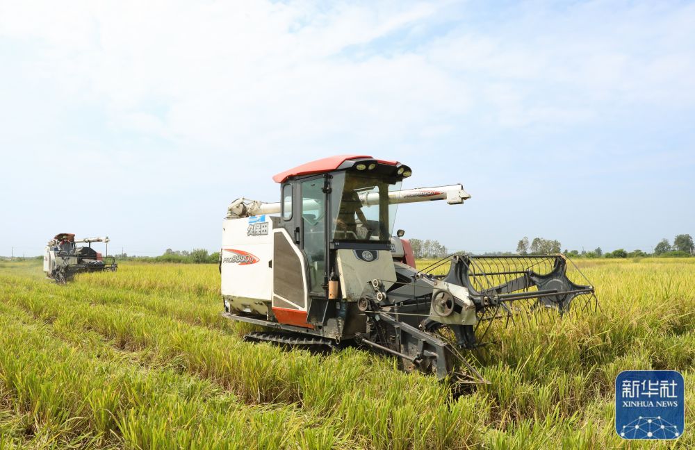 8月21日,在安徽省合肥市肥西县山南镇龙嘴村再生稻种植基地,当地农户抢抓农时收割头茬再生稻,确保粮食颗粒归仓。新华社发(陈家乐 摄)