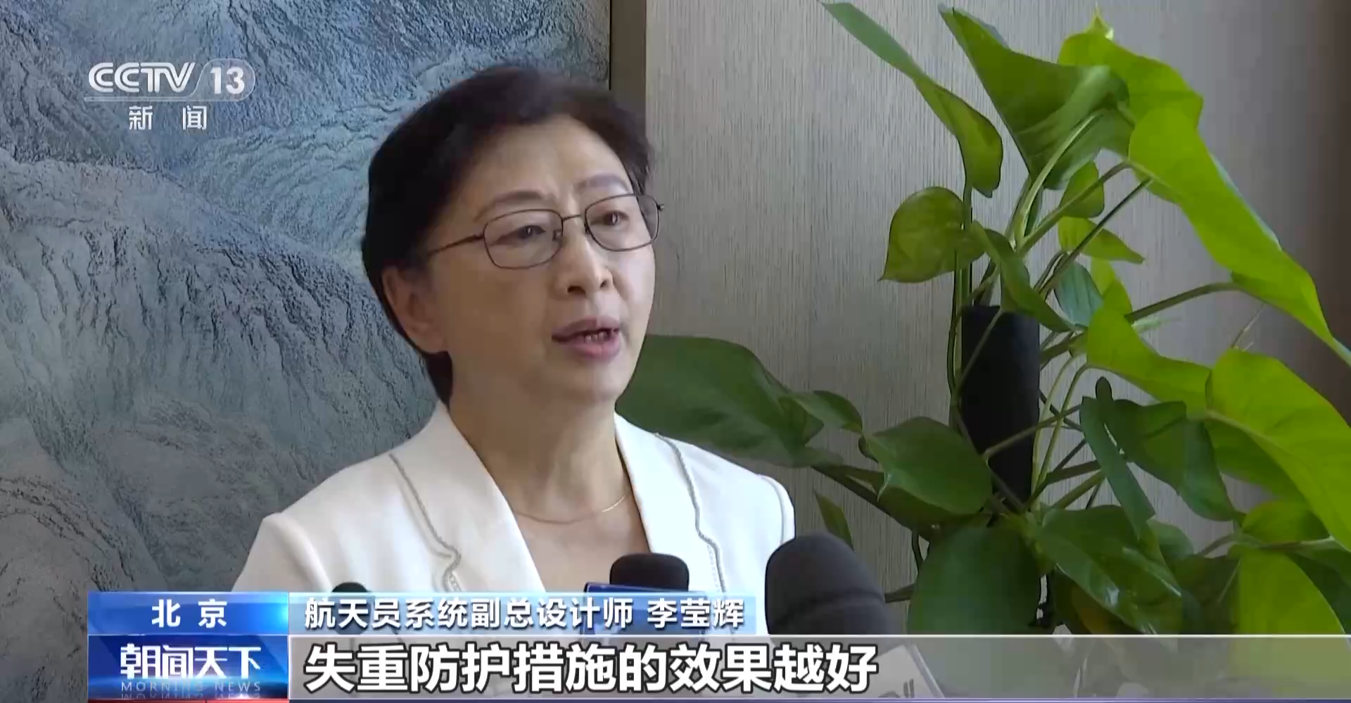 航天员系统副总设计师 李莹辉:我们从空间站建设开启第一个乘组,神十二是飞90天,现在常态化飞半年,随着空间站建设建造的完整,我们的整个失重防护的体系在轨也是完整的,由于这些实验这些研究,我们对于在轨人在轨的一些变化特征理解也越来越深刻,防护措施针对性也越来越强。
