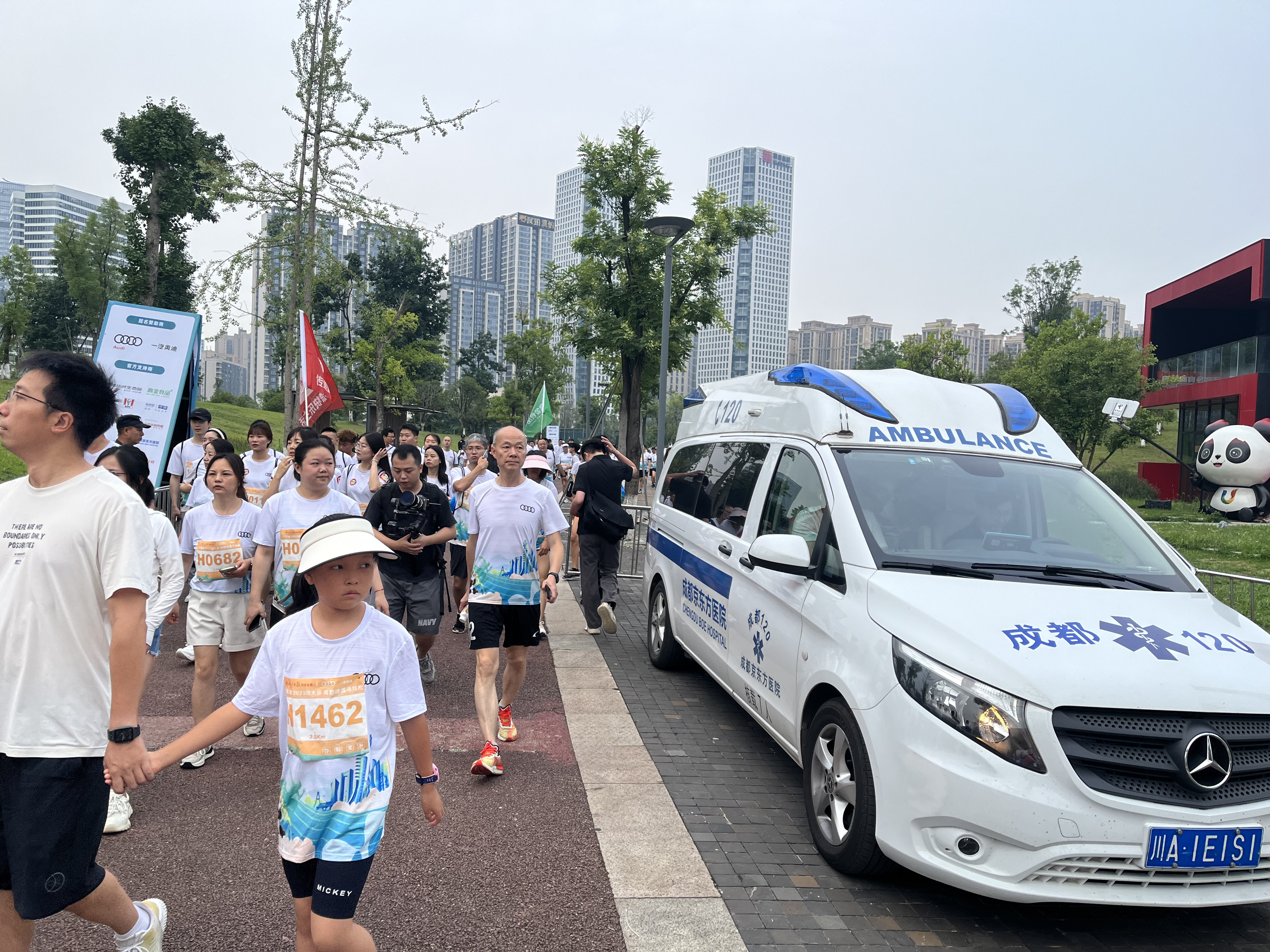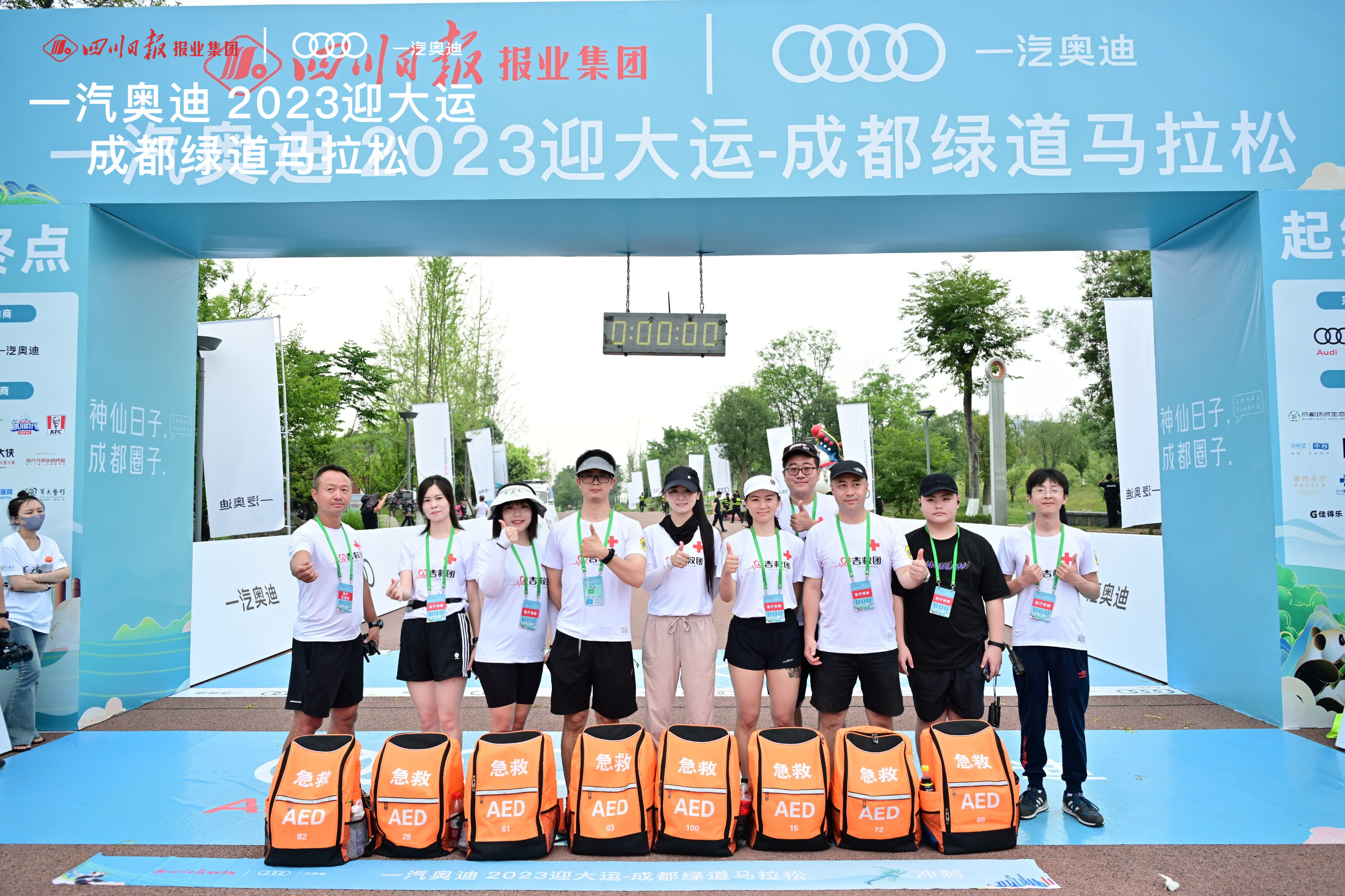 7月2日上午7:30,“一汽奥迪 2023迎大运-成都绿道马拉松”在成都桂溪生态公园西区鸣枪开跑。八一骨科医院、成都京东方医院、军大整形外科医院、减博士中医减肥美容连锁、吉救团组成医疗保障组,为赛事运动员提供医疗保障。
