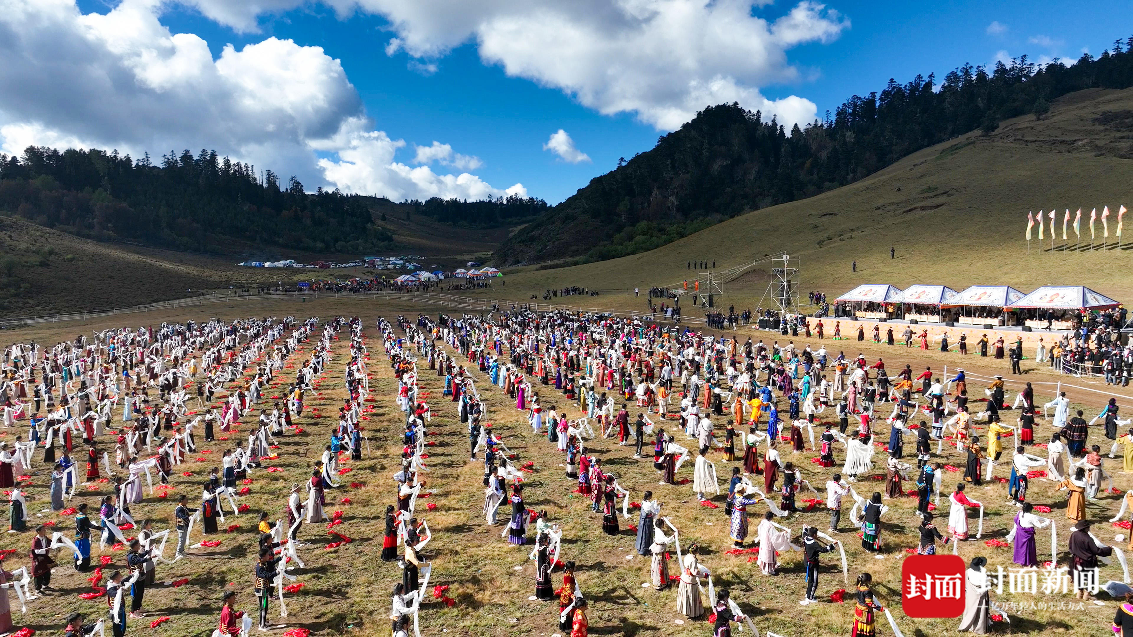10月21日,四川凉山州木里县“秘境天堂·寻梦香格里拉之源”农文旅宣传推介活动,在海拔约3600米的木里县香格里拉湖举行。活动现场,举行了一场别开生面的“万人锅庄舞动大美木里”表演。